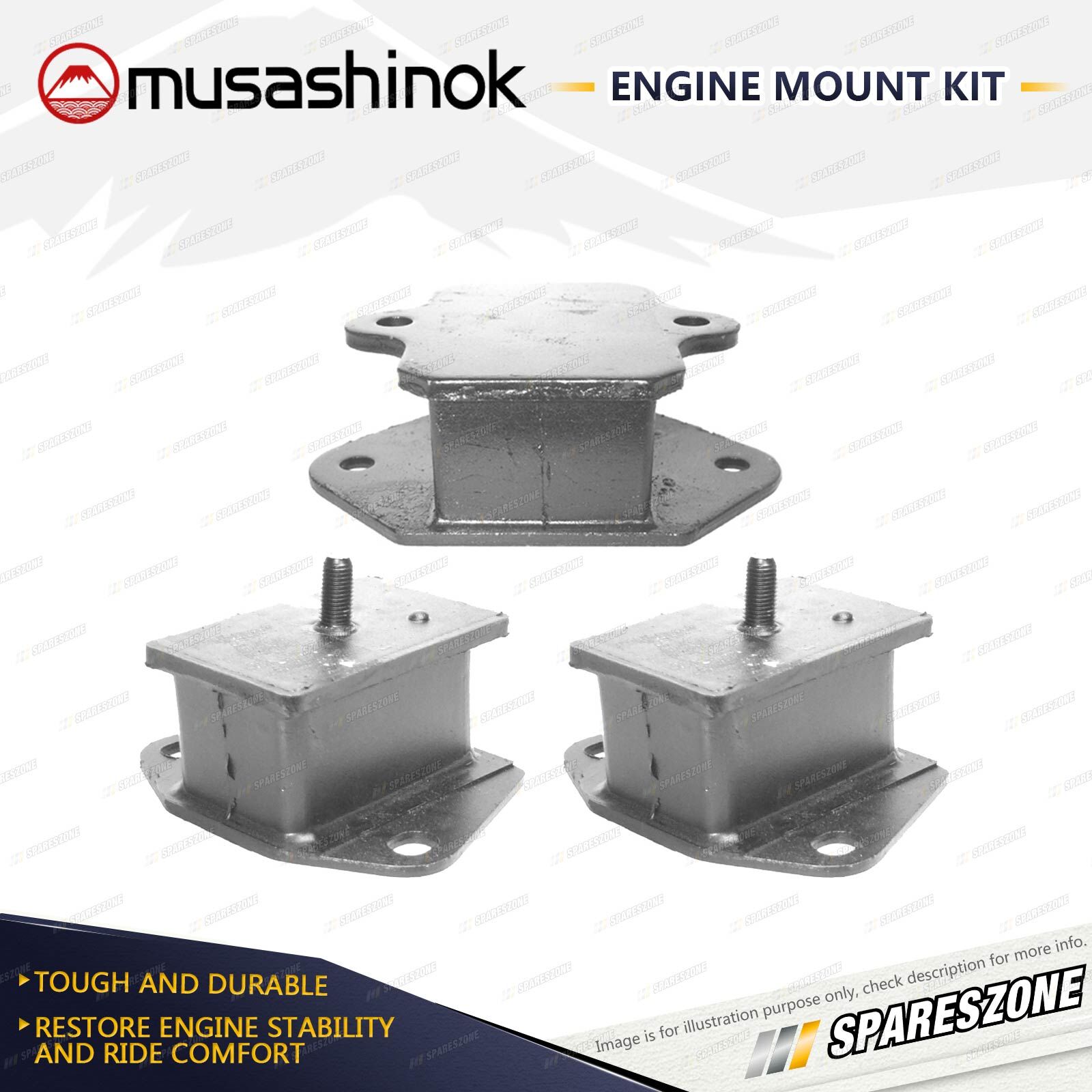 ![]() | About Engine Mounts : Musashinok engine mounts are manufactured to OE standard and very high quality, which is vital given the additional pressure on today's engine mounts.The Musashinok Engine Mount range sets new standards for quality whether manufactured in rubber or urethane.Musashinok's unique urethane design provides rubber-like smoothness and combined with urethanes durability, gives an added advantage over similar products manufactured with rubber. This makes them an ideal product for use in taxis and other commercial fleets. |