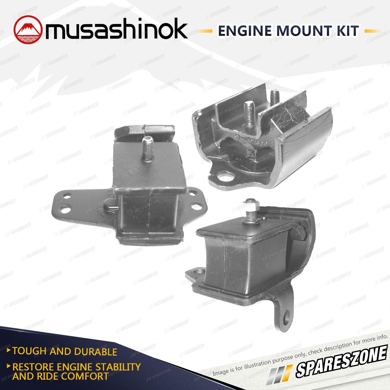 ![]() | About Engine Mounts : Musashinok engine mounts are manufactured to OE standard and very high quality, which is vital given the additional pressure on today's engine mounts.The Musashinok Engine Mount range sets new standards for quality whether manufactured in rubber or urethane.Musashinok's unique urethane design provides rubber-like smoothness and combined with urethanes durability, gives an added advantage over similar products manufactured with rubber. This makes them an ideal product for use in taxis and other commercial fleets. |