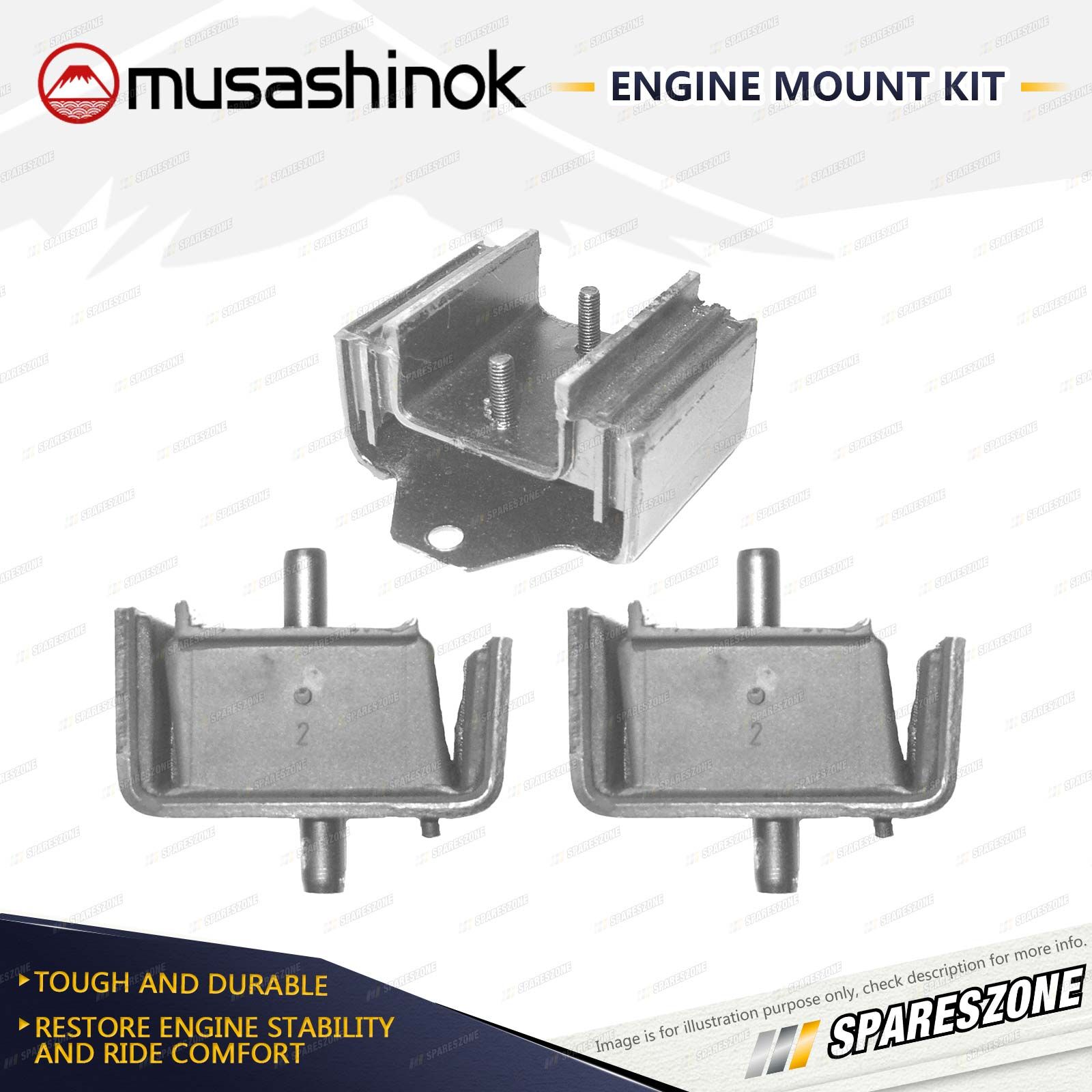 ![]() | About Engine Mounts : Musashinok engine mounts are manufactured to OE standard and very high quality, which is vital given the additional pressure on today's engine mounts.The Musashinok Engine Mount range sets new standards for quality whether manufactured in rubber or urethane.Musashinok's unique urethane design provides rubber-like smoothness and combined with urethanes durability, gives an added advantage over similar products manufactured with rubber. This makes them an ideal product for use in taxis and other commercial fleets. |