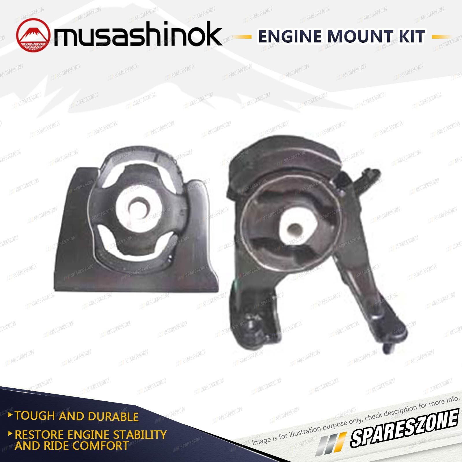 ![]() | About Engine Mounts : Musashinok engine mounts are manufactured to OE standard and very high quality, which is vital given the additional pressure on today's engine mounts.The Musashinok Engine Mount range sets new standards for quality whether manufactured in rubber or urethane.Musashinok's unique urethane design provides rubber-like smoothness and combined with urethanes durability, gives an added advantage over similar products manufactured with rubber. This makes them an ideal product for use in taxis and other commercial fleets. |