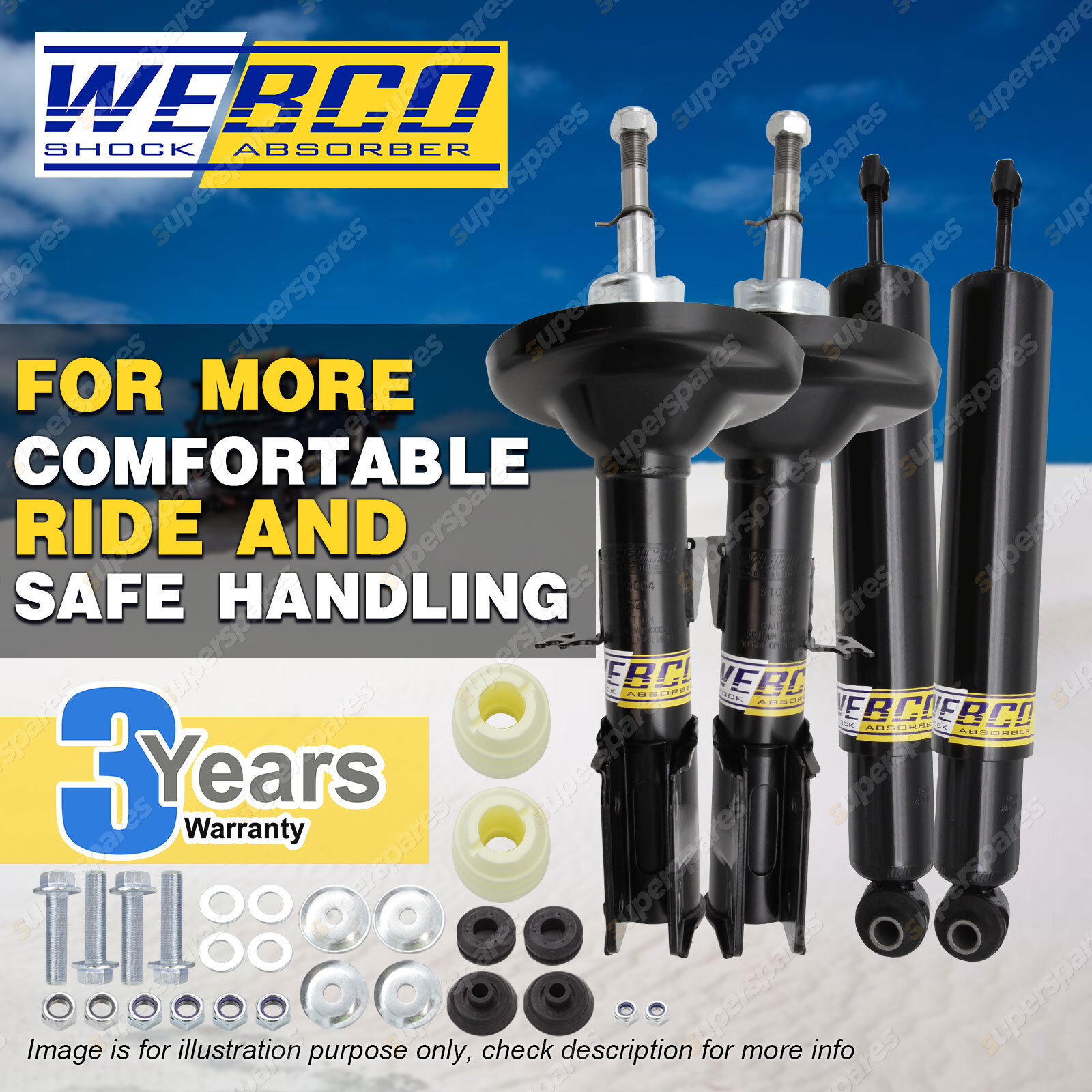 CONTENTS: 2 Pcs Front Webco Strut Shock Absorbers 2 Pcs Rear Webco Heavy Duty Shock Absorbers SUITS: HOLDEN MONARO V2 V2 II V2 III V6 & V8 Coupe (incl. lowered) Dec-01 - Sep-04 (*please advise year model, so we can make sure send you the right parts) |