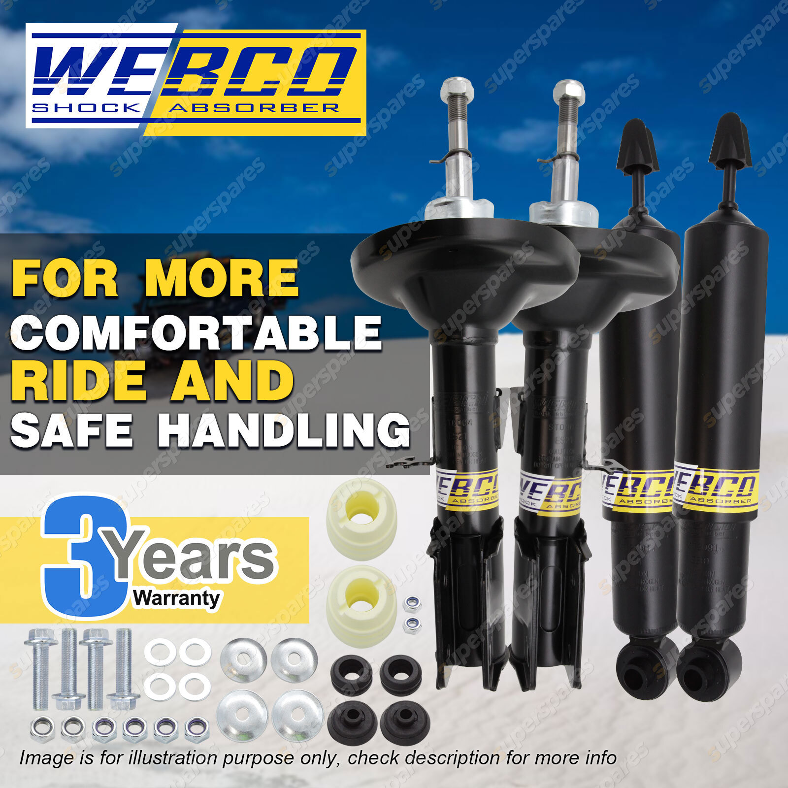 CONTENTS: 2 Pcs Front Webco Strut Shock Absorbers 2 Pcs Rear Webco Heavy Duty Shock Absorbers SUITS: HOLDEN COMMODORE STATION WAGON VT VX VX II Station Wagon (incl. lowered) Aug-97 - Oct-02 HOLDEN COMMODORE STATION WAGON VY Station Wagon (incl. lowered) Oct-02 - Jul-04 (*please advise year model, so we can make sure send you the right parts) |
