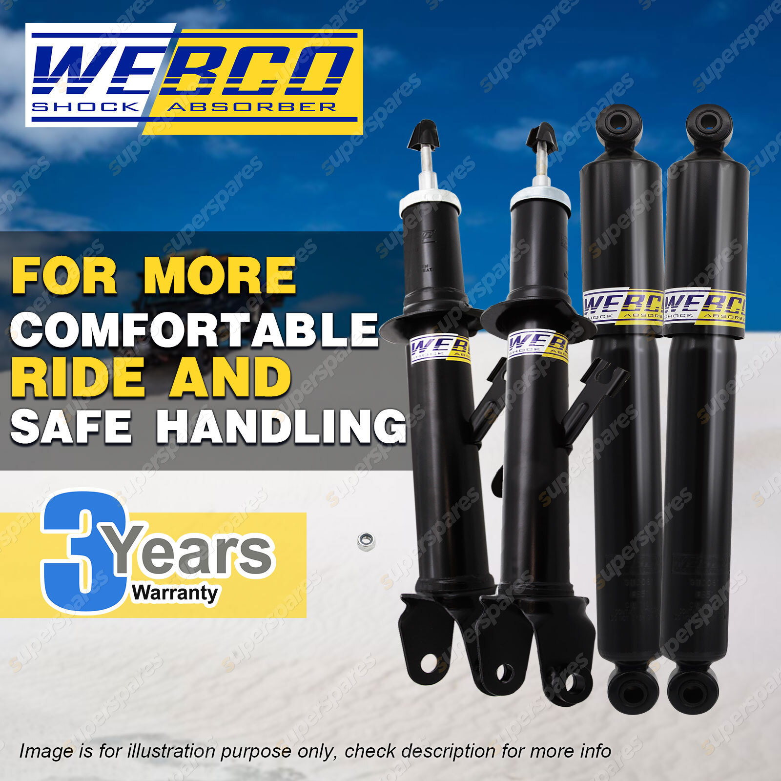 CONTENTS: 2 Pcs Front Webco Spring Seat Strut Shock Absorbers 2 Pcs Rear Webco Heavy Duty Shock Absorbers SUITS: FORD TERRITORY SX SY all models 2WD Station Wagon May-04 - Aug-07 (*please advise year model, so we can make sure send you the right parts) |