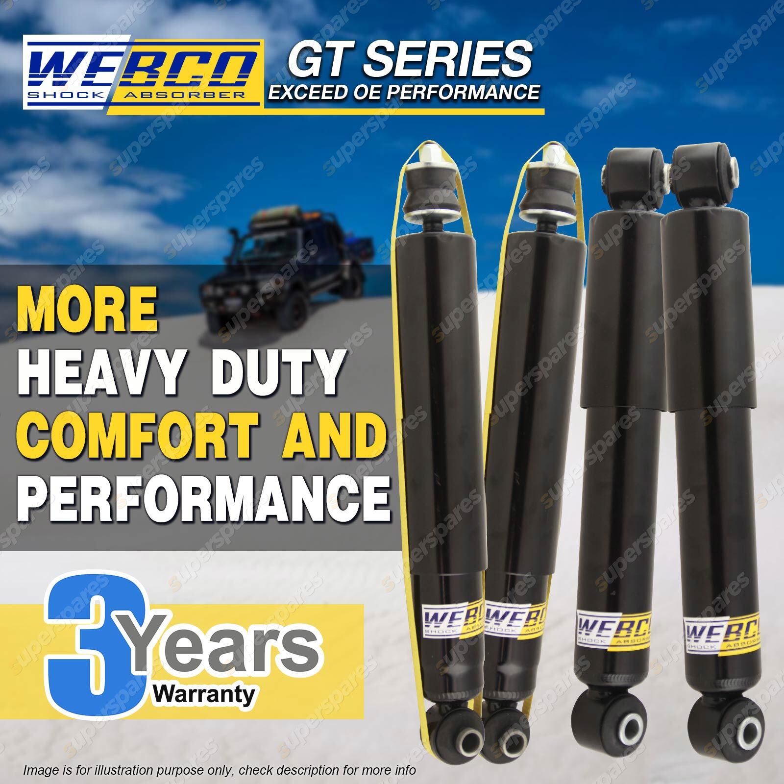 CONTENTS: 2 Pcs Front Webco 410mm Extended Heavy Duty Shock Absorbers 2 Pcs Rear Webco Heavy Duty Shock Absorbers SUITS: HOLDEN RODEO 4WD R7 R9 4WD Ute (incl. V6 eng) Nov-96 - Feb-03 HOLDEN RODEO 4WD RA 4WD Cab Chassis & Ute (7YC) (models fitted with torsion bar front suspension) Mar-03 - Jun-08 (*please advise year model, so we can make sure send you the right parts) |