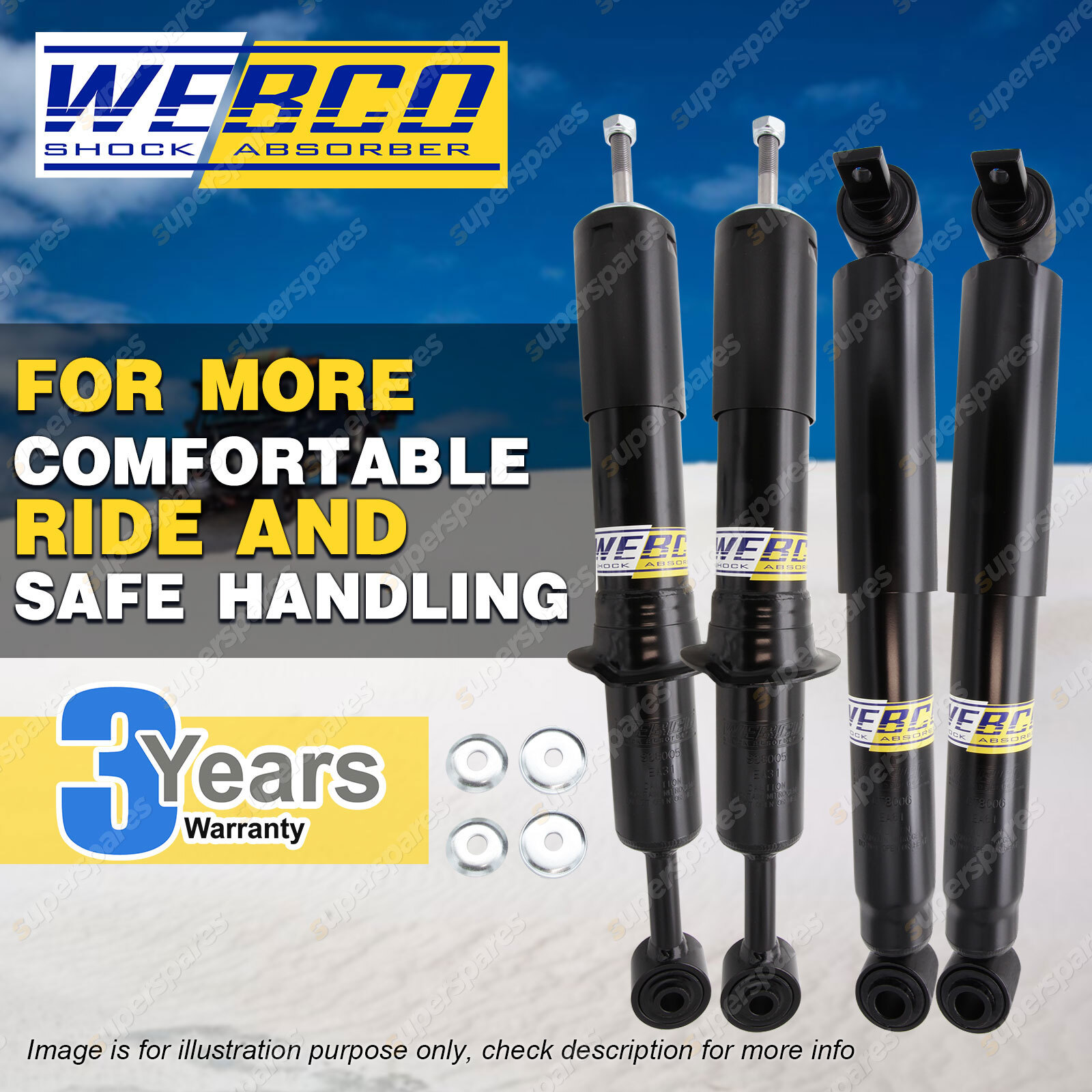 | CONTENTS: 2 Pcs Front Webco Spring Seat Shock Absorbers 2 Pcs Rear Webco Heavy Duty Shock Absorbers SUITS: GWM Great Wall Tank 300 2023-On (*please advise year model, so we can make sure send you the right parts) |