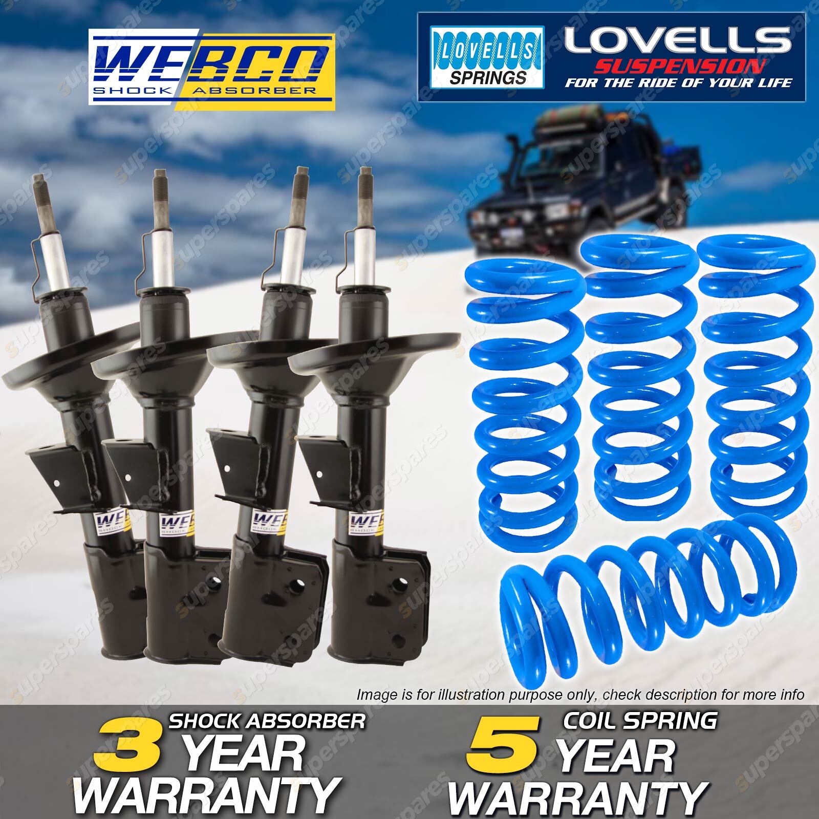 CONTENTS: 2 Pcs Front Webco Strut Shock Absorbers 2 Pcs Front Raised Lovells Coil Springs (40-50mm Raised) 2 Pcs Rear Webco Strut Shock Absorbers 2 Pcs Rear Raised Lovells Coil Springs (40-50mm Raised) SUITS: Hyundai Tucson JN 2.7ltr V6 AWD Wagon Aug-04-Jan10 |
