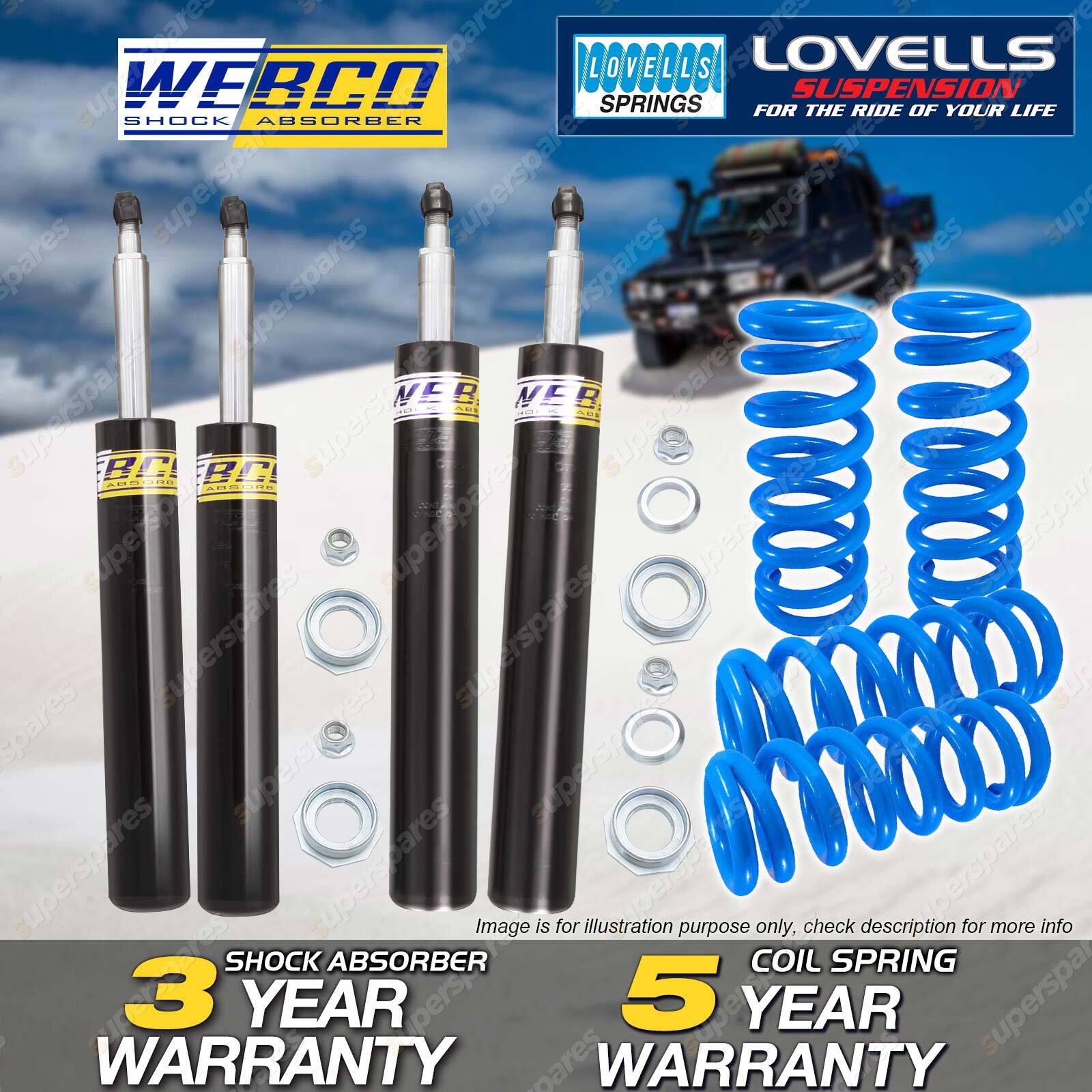 CONTENTS: 2 Pcs Front Webco Cartridge Shock Absorbers 2 Pcs Front STD Lovells Coil Springs (Standard) 2 Pcs Rear Webco Cartridge Shock Absorbers 2 Pcs Rear STD Lovells Coil Springs (Standard) SUITS: Toyota Camry SV21 Wagon 4 Cyl 2 5/87-1/93 |