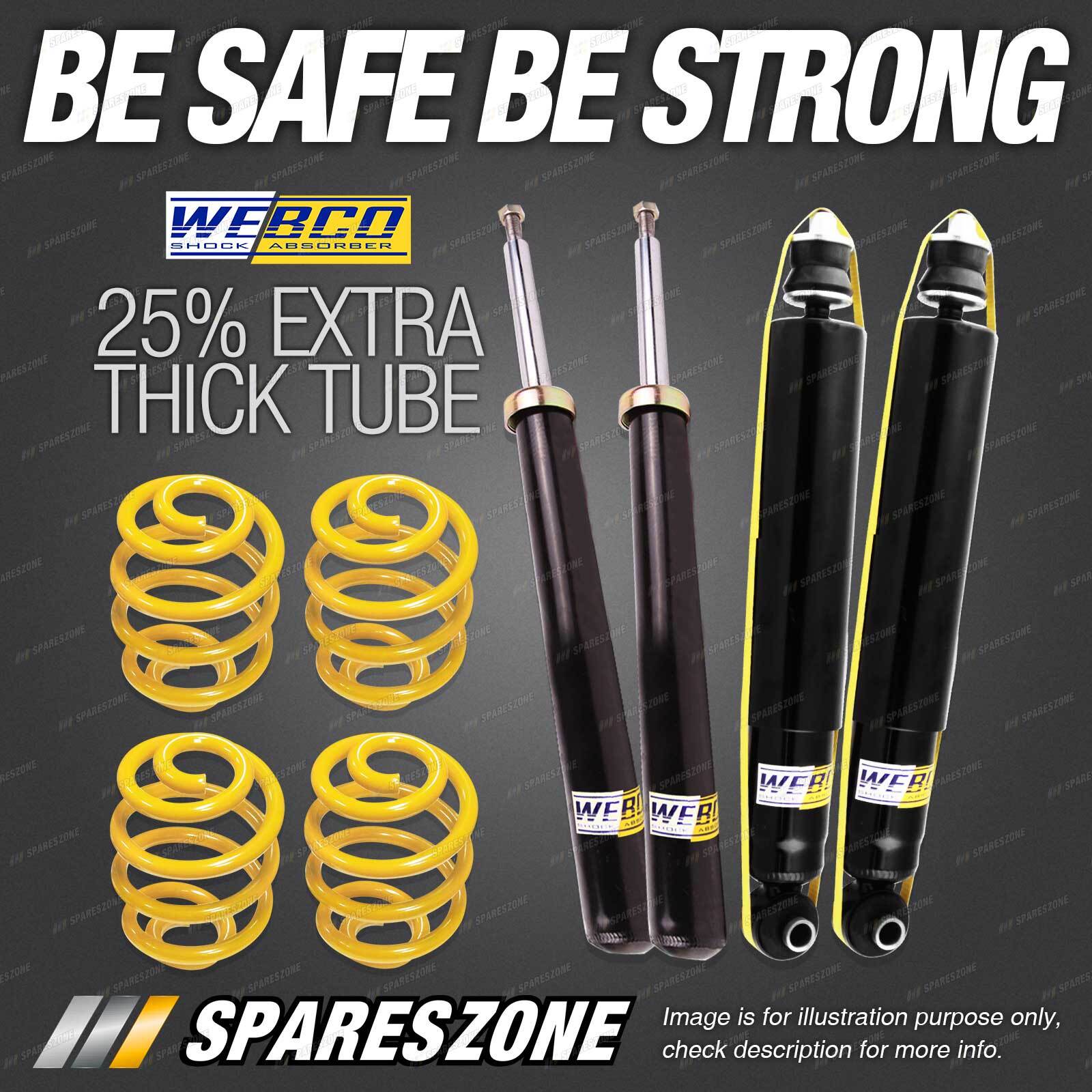 2 Pcs Front Webco Cartridge Shock Absorbers 2 Pcs Rear Webco Premium Shock Absorbers 2 Pcs Front Lowered King Coil Springs (30mm Lowered) 2 Pcs Rear Lowered King Coil Springs (30mm Lowered) |