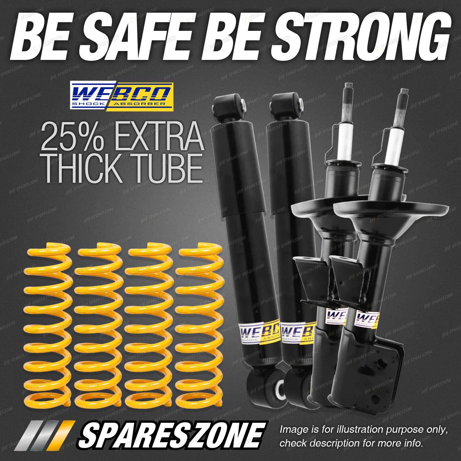 2 Pcs Front Webco Strut Shock Absorbers 2 Pcs Rear Webco Premium Shock Absorbers 2 Pcs Front Raised King Coil Springs (20mm Raised) 2 Pcs Rear Raised King Coil Springs (20mm Raised) |