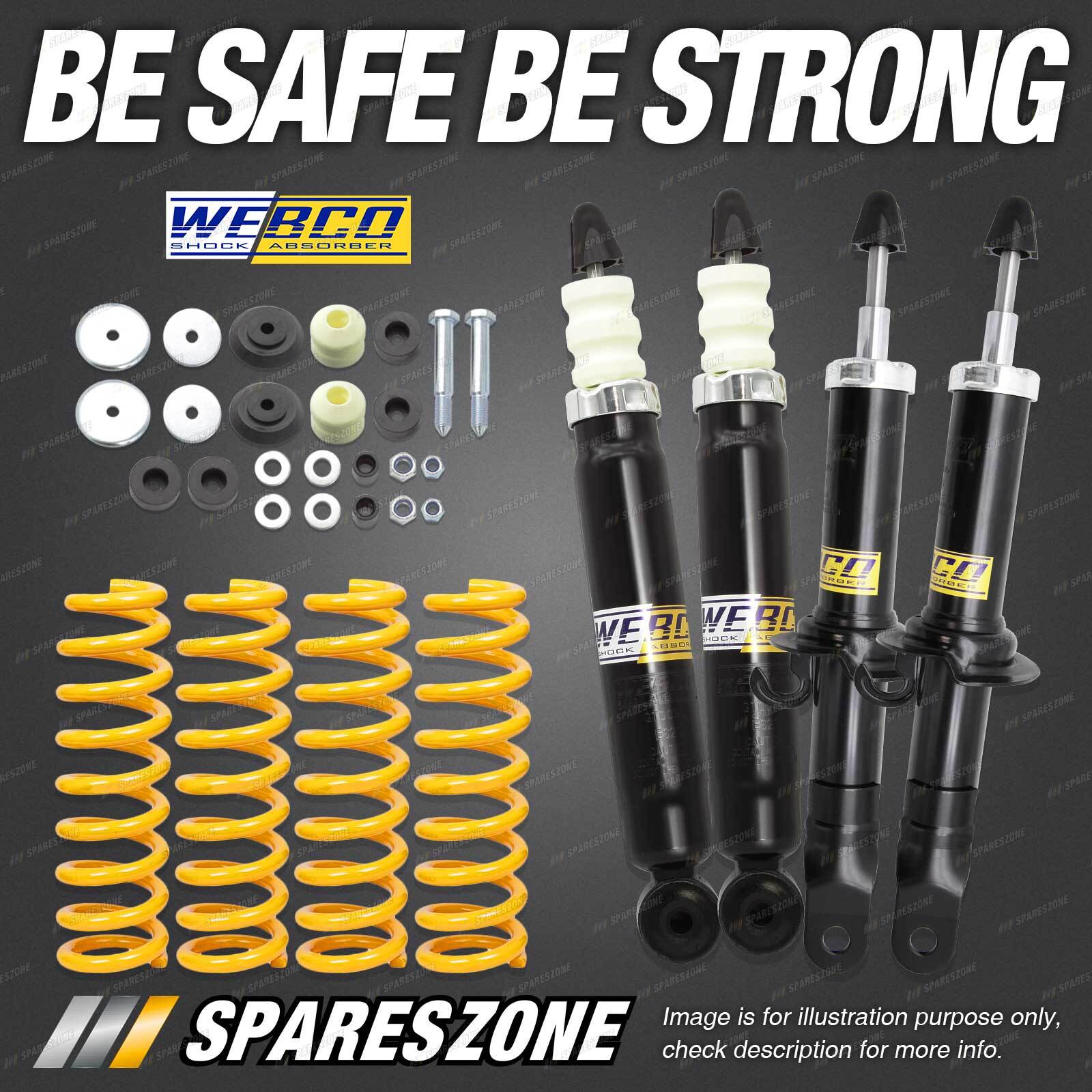2 Pcs Front Webco Spring Seat Shock Absorbers 2 Pcs Rear Webco Heavy Duty Shock Absorbers 2 Pcs Front STD King Coil Springs (Standard Height) 2 Pcs Rear STD King Coil Springs (Standard Height) |
