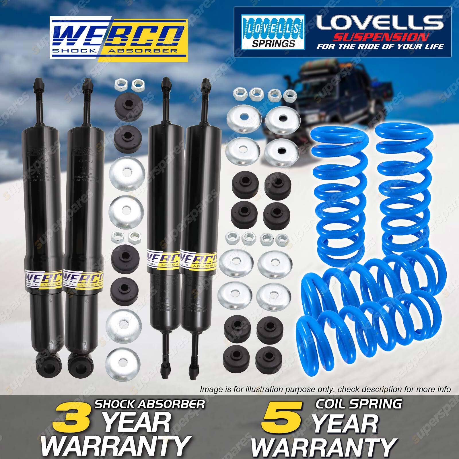 CONTENTS: 2 Pcs Front Webco Heavy Duty Shock Absorbers 2 Pcs Front STD Lovells Coil Springs (Standard) 2 Pcs Rear Webco Heavy Duty Shock Absorbers 2 Pcs Rear STD Lovells Coil Springs (Standard) SUITS: Toyota Landcruiser 80 Series 6 Cyl All HZJ80 Wagon- Linear 8/91-2/98 |
