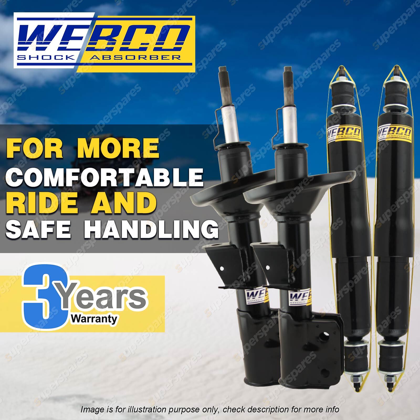 CONTENTS: 2 Pcs Front Webco Strut Shock Absorbers 2 Pcs Rear Webco Shock Absorbers SUITS: TOYOTA TARAGO, EMINA, ESTIMA, LUCIDA, PREVIA TCR11 TCR20 2WD Van (independent rear suspension) Sep-90 - Jun-00 (*please advise year model, so we can make sure send you the right parts) |