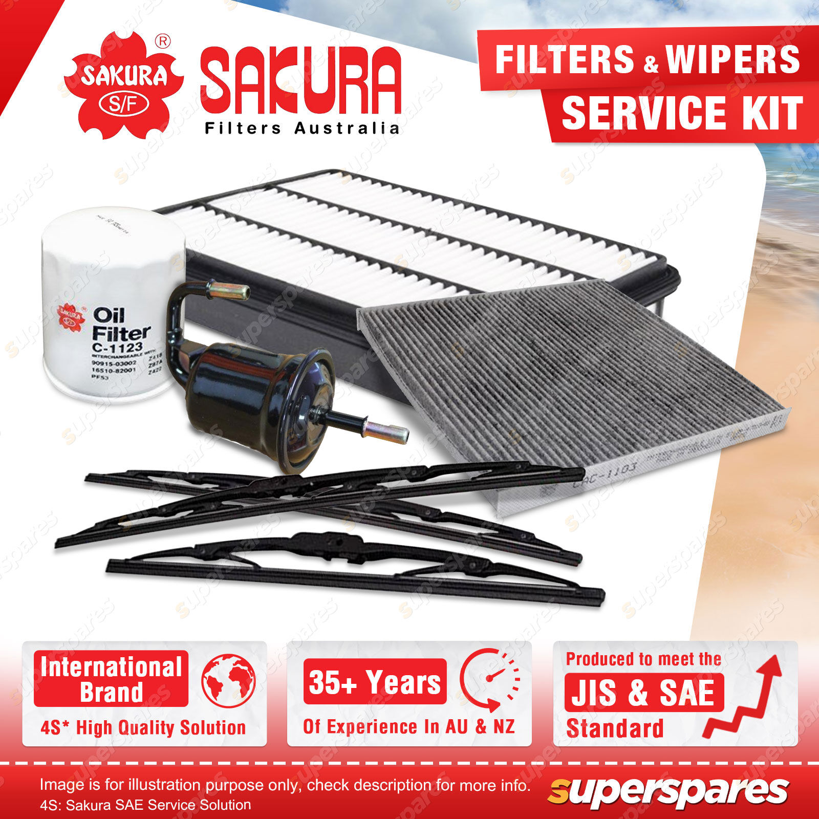 Content : Sakura Front + Rear Wiper Blades & Oil Air Fuel Cabin Filter Service Kit