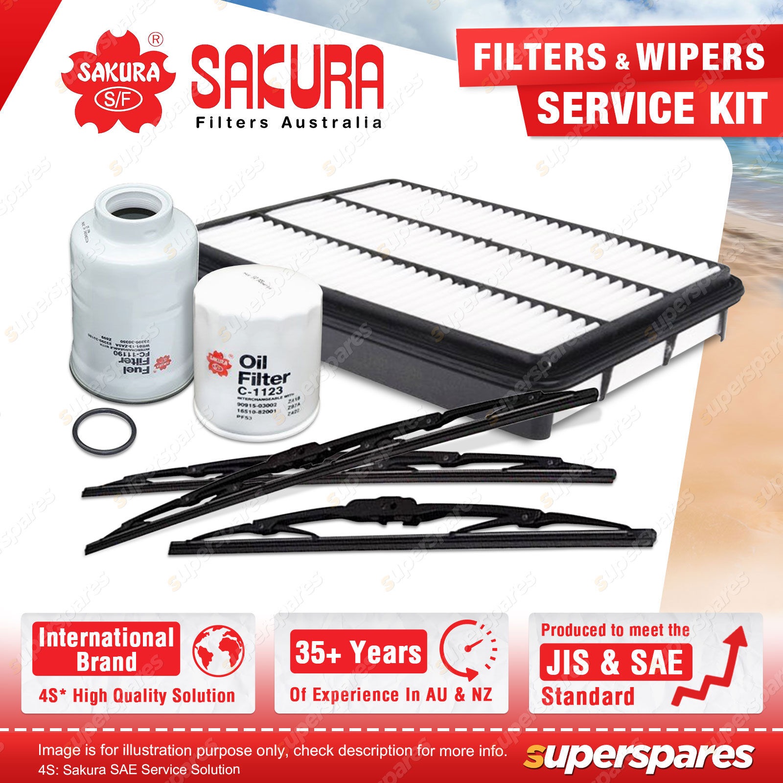 Content : Sakura Front + Rear Wiper Blades & Oil Air Fuel Filter Service Kit