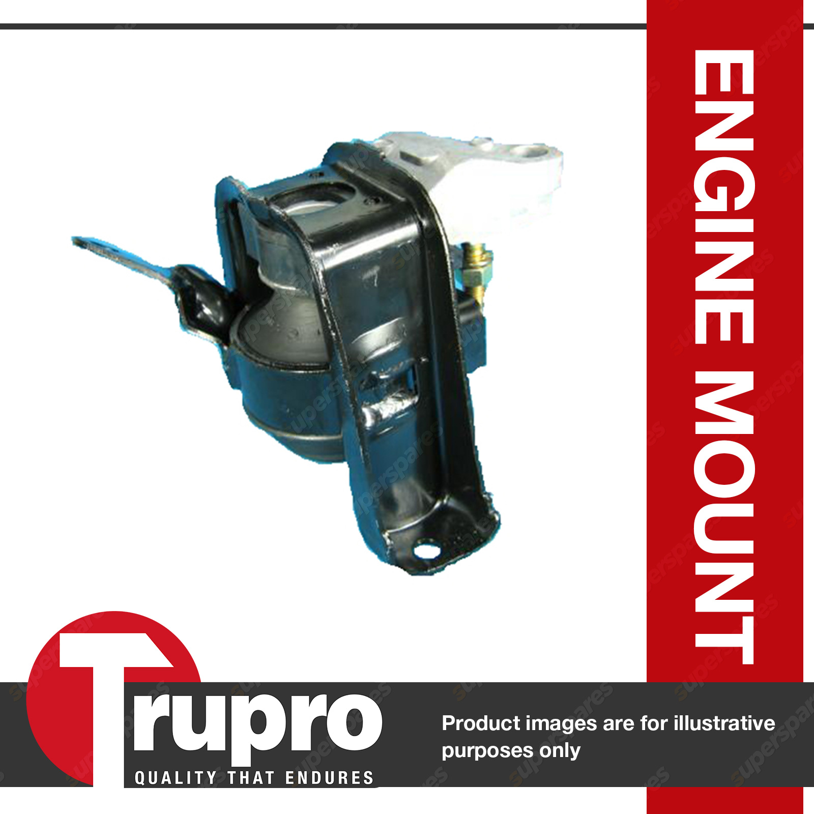 Take a look at your other mounts prior to ordering. Grab your engine by the top and shake it. If it movesrather significantly, replace all the mounts to stiffen up your entire drivetrain for better performance. Excessive drivetrain vibration is cause by one of a few things, but more than likely, it is the mounts in your vehicle. They keep your engine and transmission secure for more positive shifting and drivetrain triangulation, as well as absorbing vibration. If any of these are occurring in your vehicle, its time to examine your mounts. This motor mount is one step towards repair. This mount will function and fit just like stock. Not only will it fit great, it will absorb those nasty vibrations, quieting your cabin andreducing vehicle shake. This mount is of stock hardness andwill restore a factory type feel. |