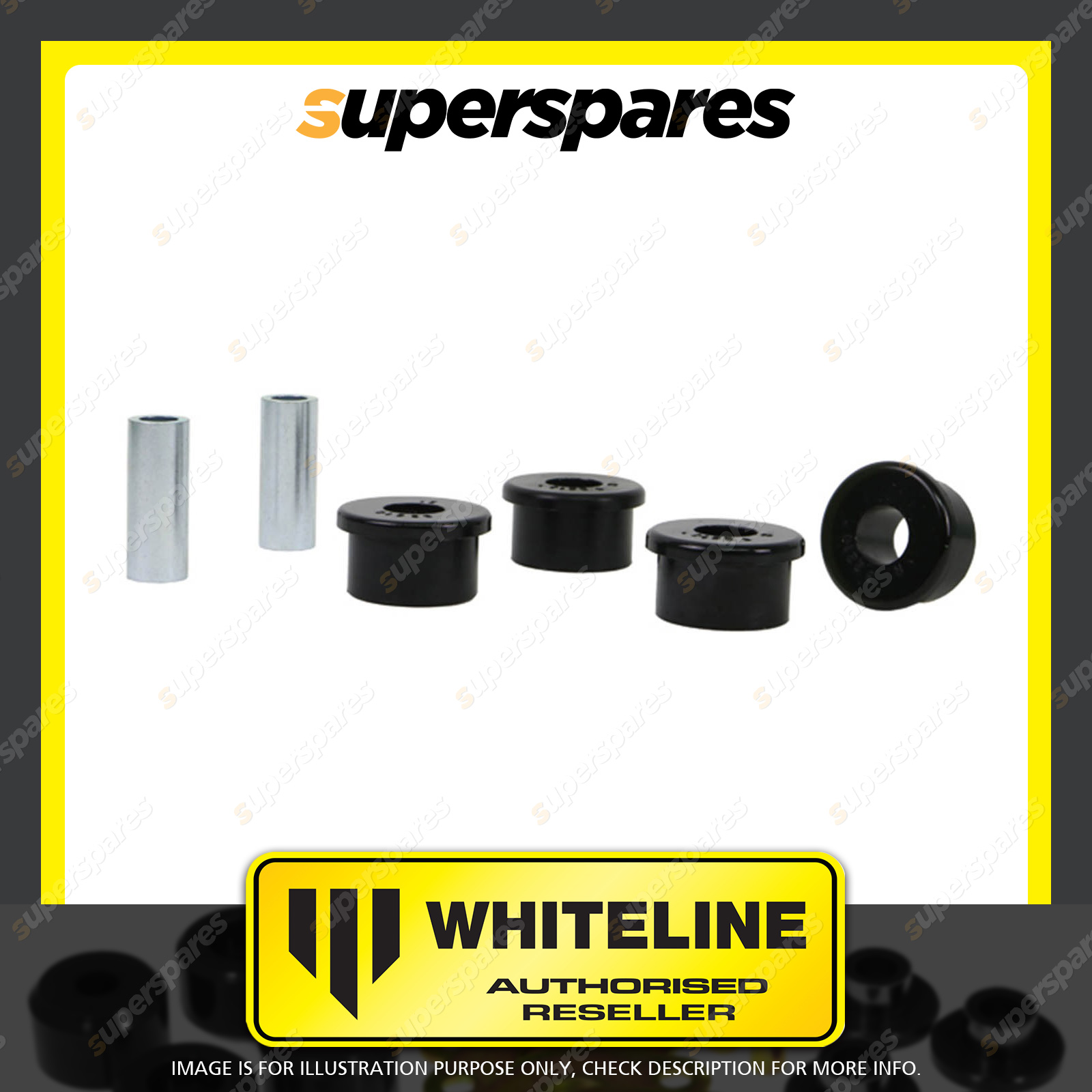 | Contents : Whiteline Front Shock absorber - to control arm bushing Warranty : 3 Year / 60,000Kms Kit Contents : 4 Bushings, 2 Tubes, Grease |