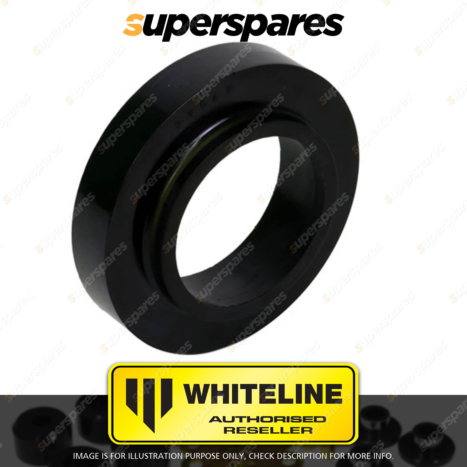 | Contents : Whiteline Front Spring - pad bushing Warranty : 3 Year / 60,000Kms Kit Contents : 1 Bushing |