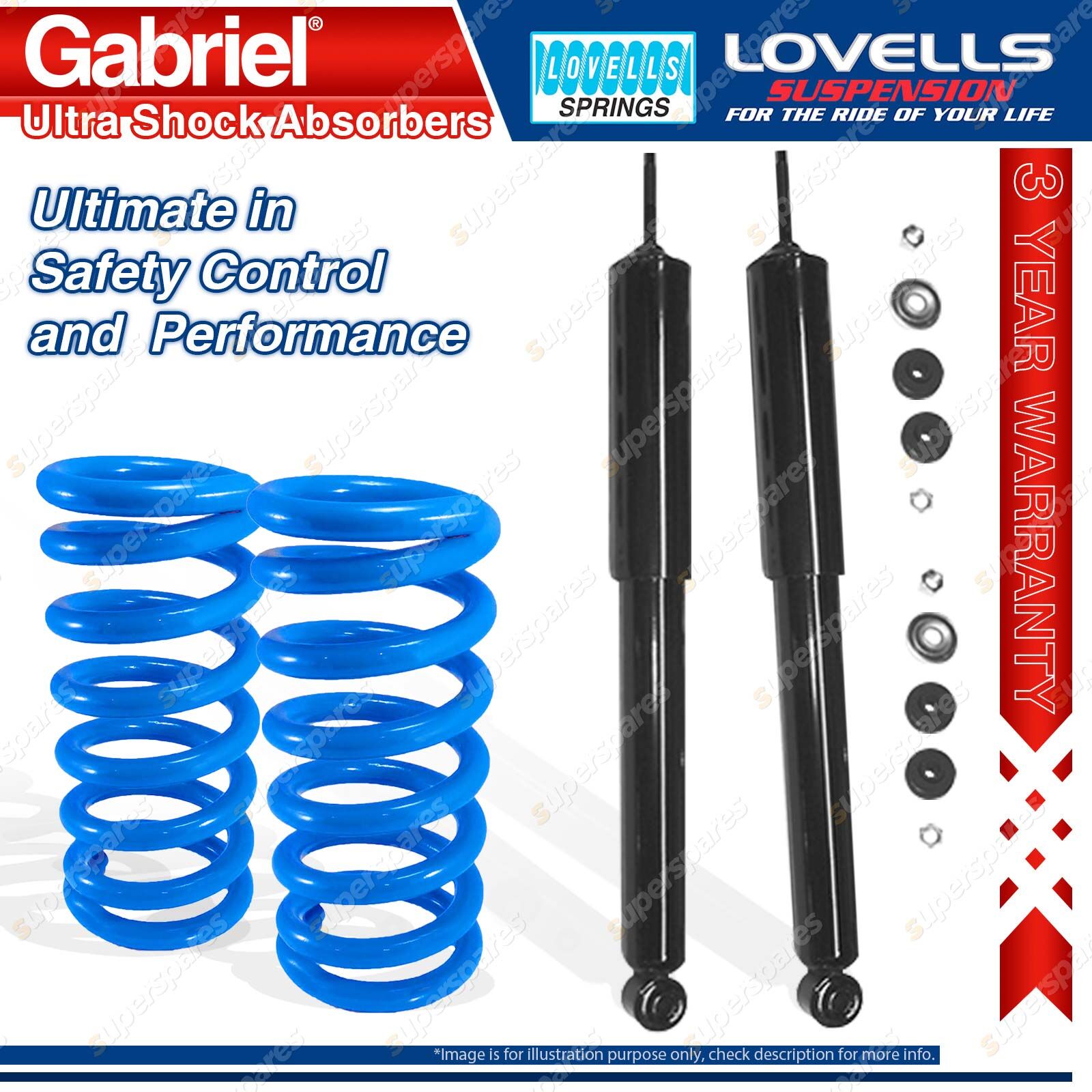 Contents: 2 x Gabriel Ultra Shock Absorbers - Gas 2 x Heavy Duty Standard Height Lovells Springs Suit: Jaguar Incl. Daimler XJ6 I, II, III Sedan 4/69-87 |