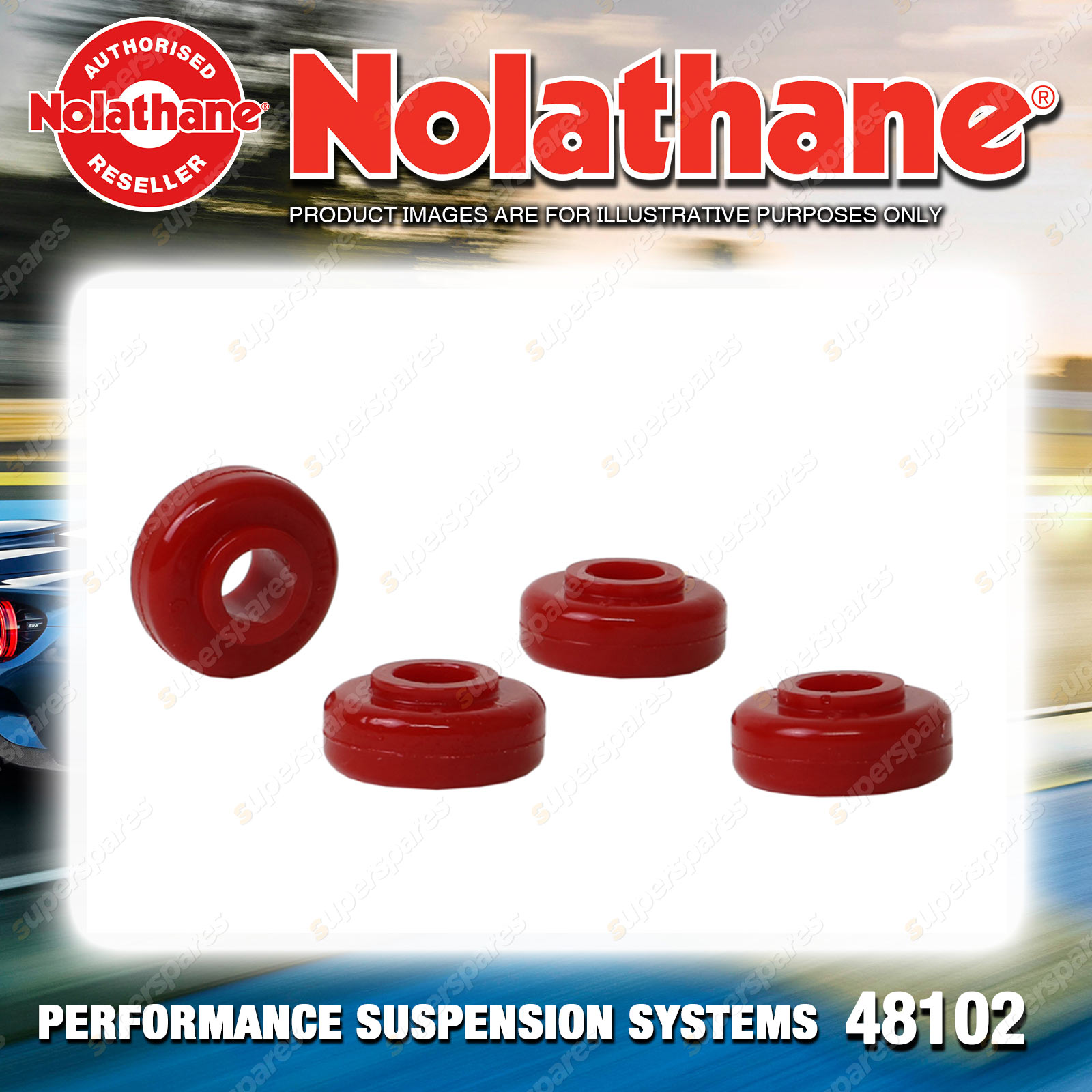 | Contents : Nolathane Front Strut rod - to chassis bushing Warranty : 3 Year / 60,000Kms Kit Contents : 4 Bushings, Grease |