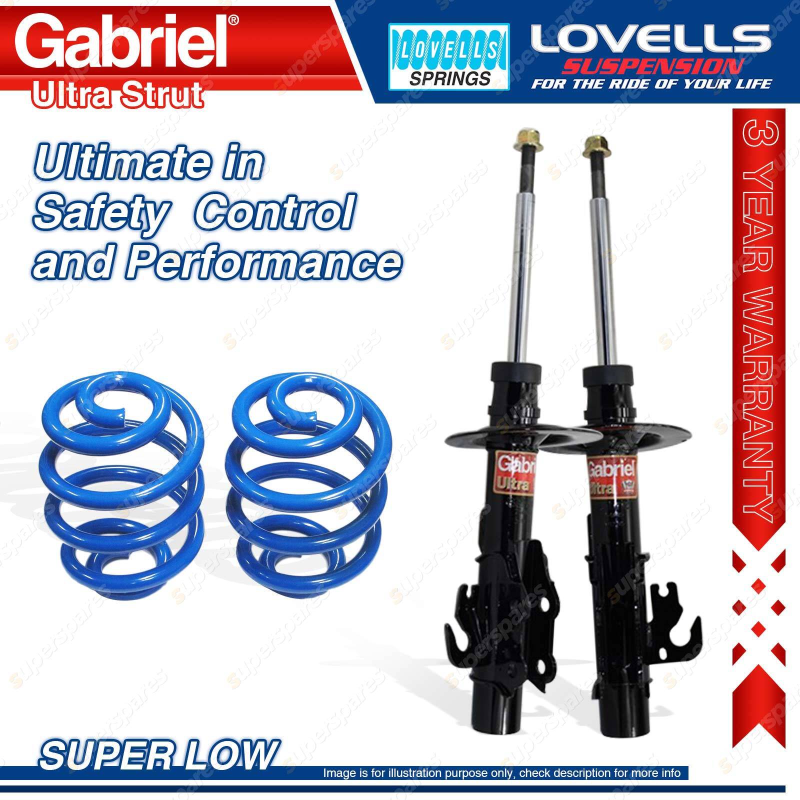 Contents: 2 x Front Gabriel Ultra Strut Shock Absorbers - Gas 2 x Front Super Low Lovells Coil Springs Suit: Holden(Gmh) Commodore Sedan Incl. Calais VF excl. FE2, FE3 lowered susp. 5/13-10/17 Holden(Gmh) Commodore Ute VF excl. FE2, FE3, OE lowered susp. 5/13-10/17 Holden(Gmh) Commodore Wagon Incl. Calais VF excl. FE2, FE3, OE lowered susp. 5/13-10/17 |