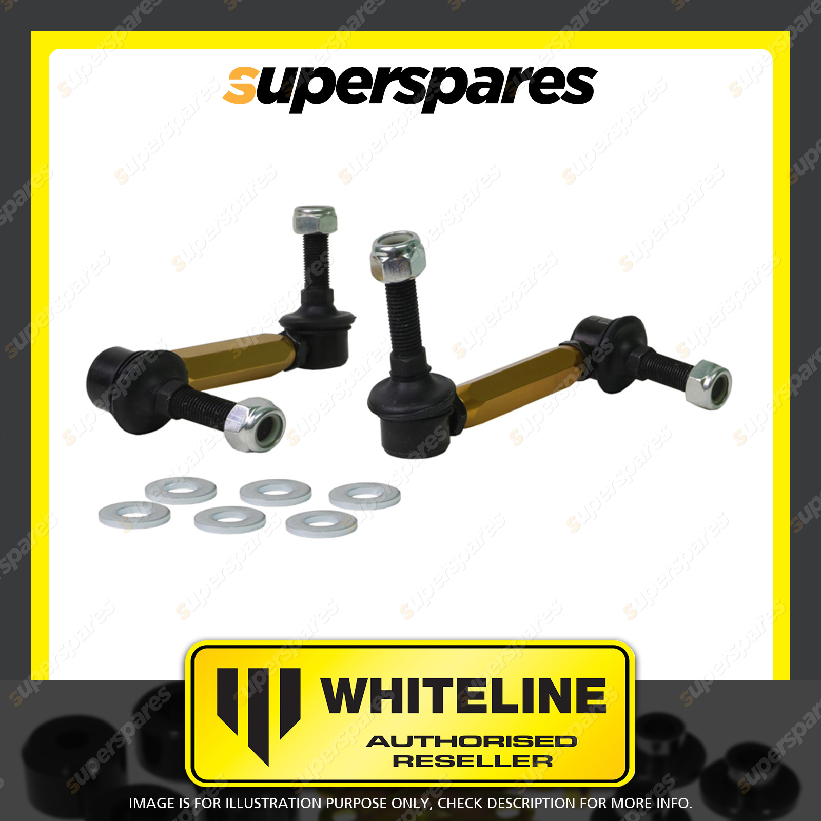 | Contents : Whiteline Front Sway bar - link Warranty : 3 Year / 60,000Kms Kit Contents : 2 Links, 6 Washers, Install Guide |