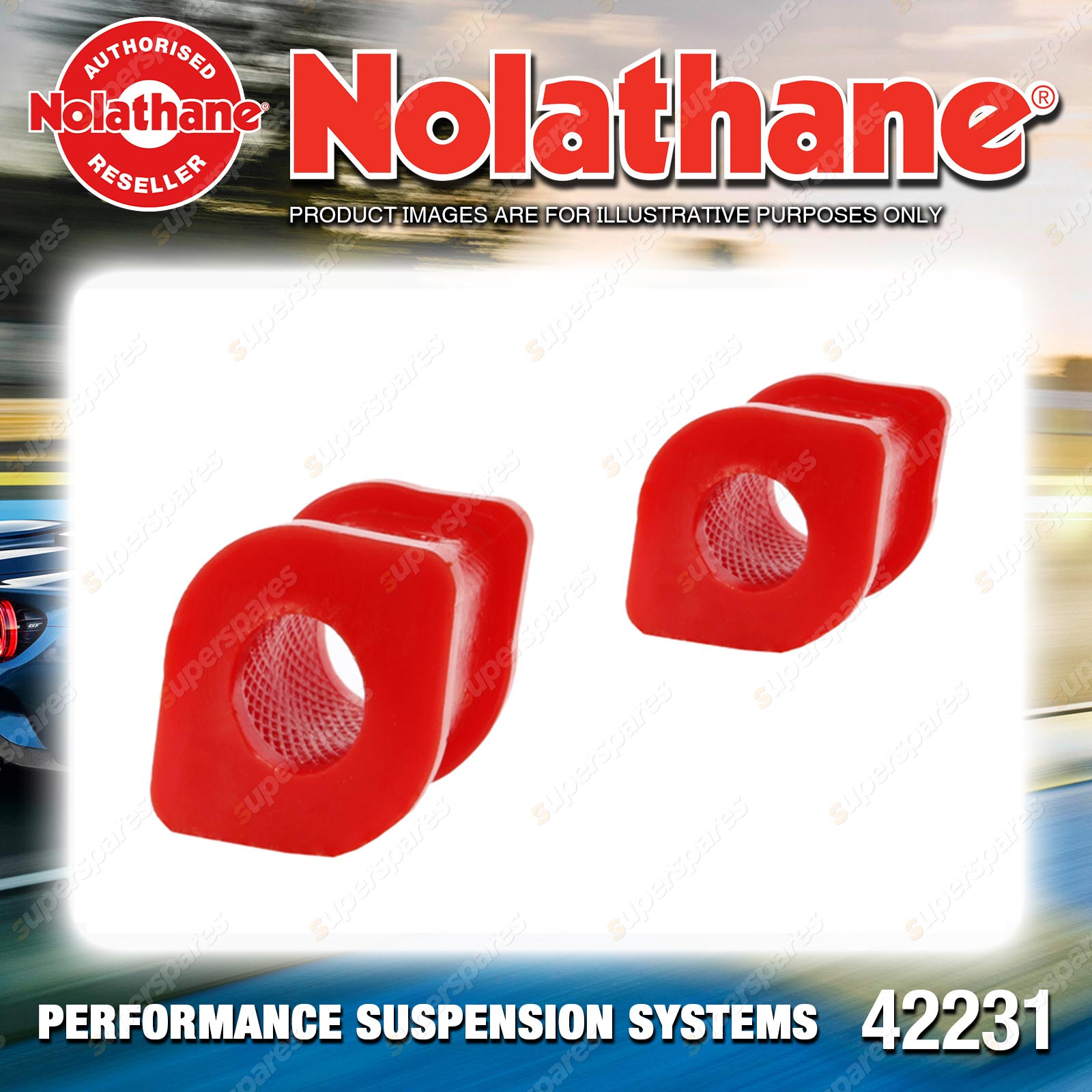 | Contents : Nolathane Front Sway bar - mount bushing Warranty : 3 Year / 60,000Kms Kit Contents : 2 Bushings, Grease |