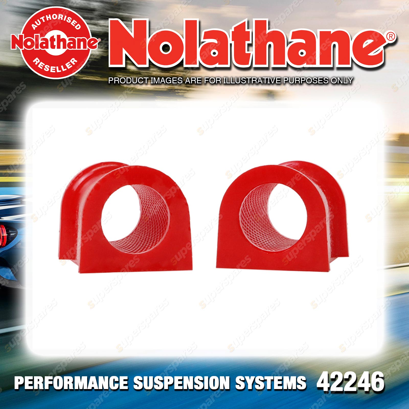 | Contents : Nolathane Front Sway bar - mount bushing Warranty : 3 Year / 60,000Kms Kit Contents : 2 Bushings, Grease |
