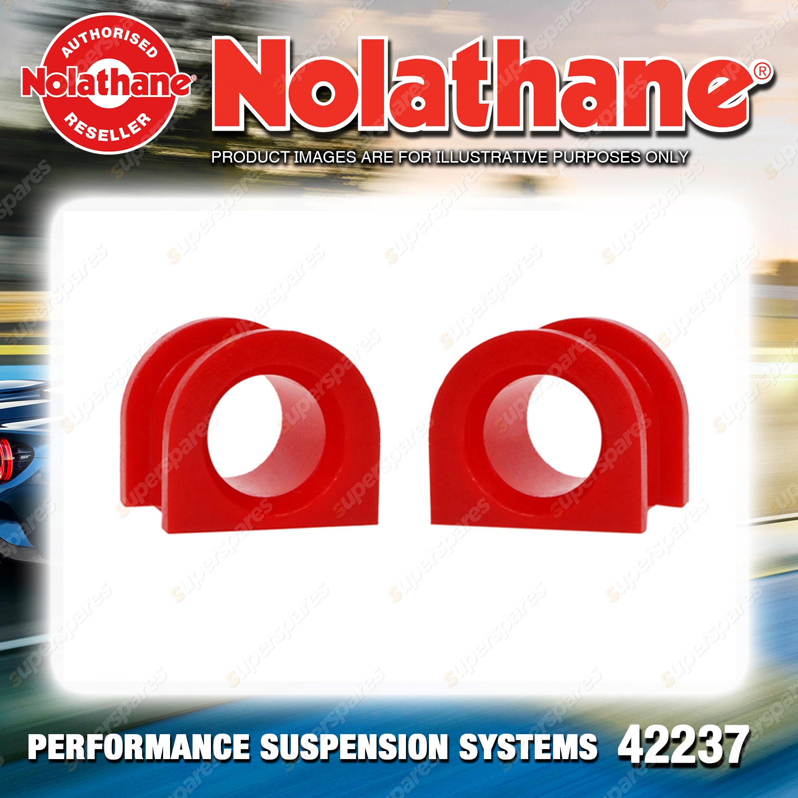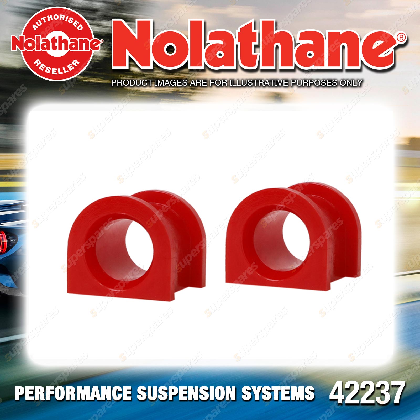 | Contents : Nolathane Front Sway bar - mount bushing Warranty : 3 Year / 60,000Kms Kit Contents : 2 Bushings, Grease |