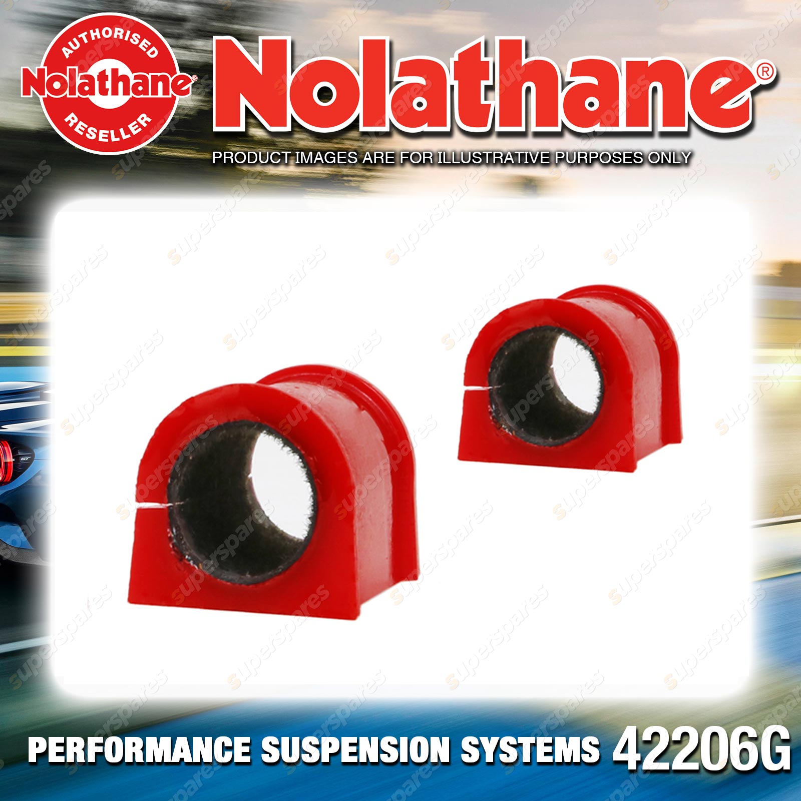| Contents : Nolathane Front Sway bar - mount bushing Warranty : 3 Year / 60,000Kms Kit Contents : 2 Bushings, Install Guide |