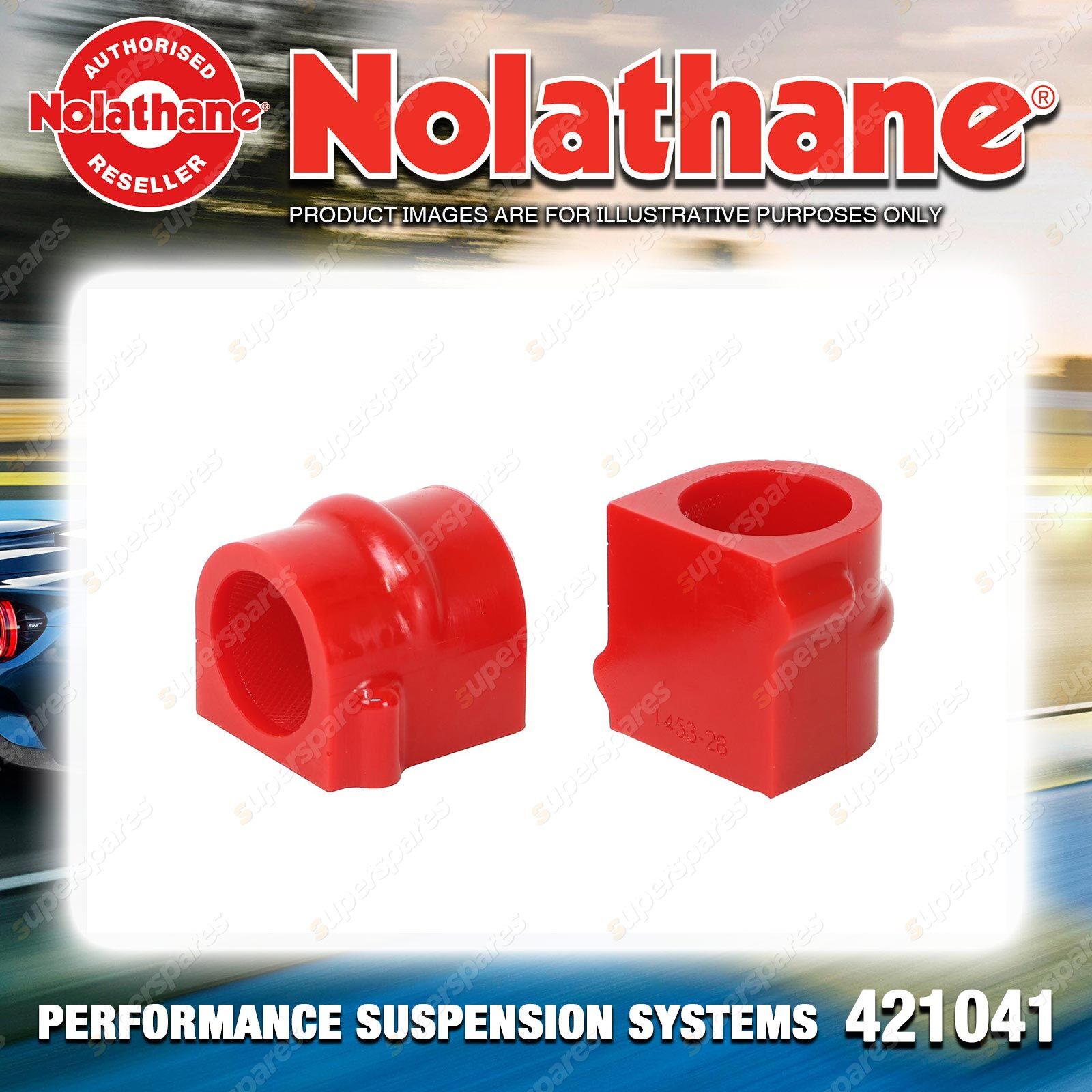 Contents : Nolathane Sway Bar Mount Bushing Kit 28mm Position : Front Warranty : Limited Lifetime Warranty Kit Contents : 2 Bushings |