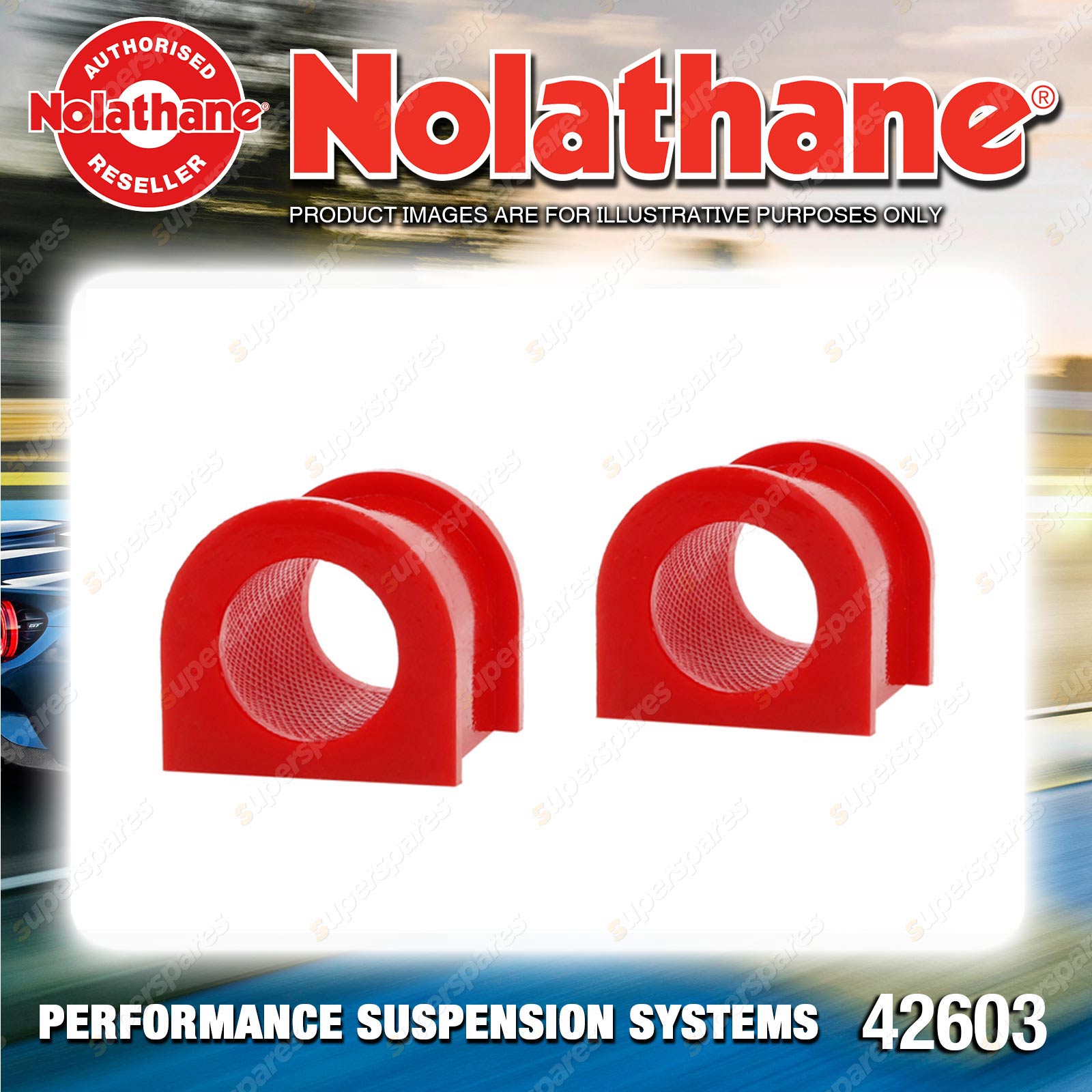 | Contents : Nolathane Front Sway bar - mount bushing Warranty : 3 Year / 60,000Kms Kit Contents : 2 Bushings, Grease |