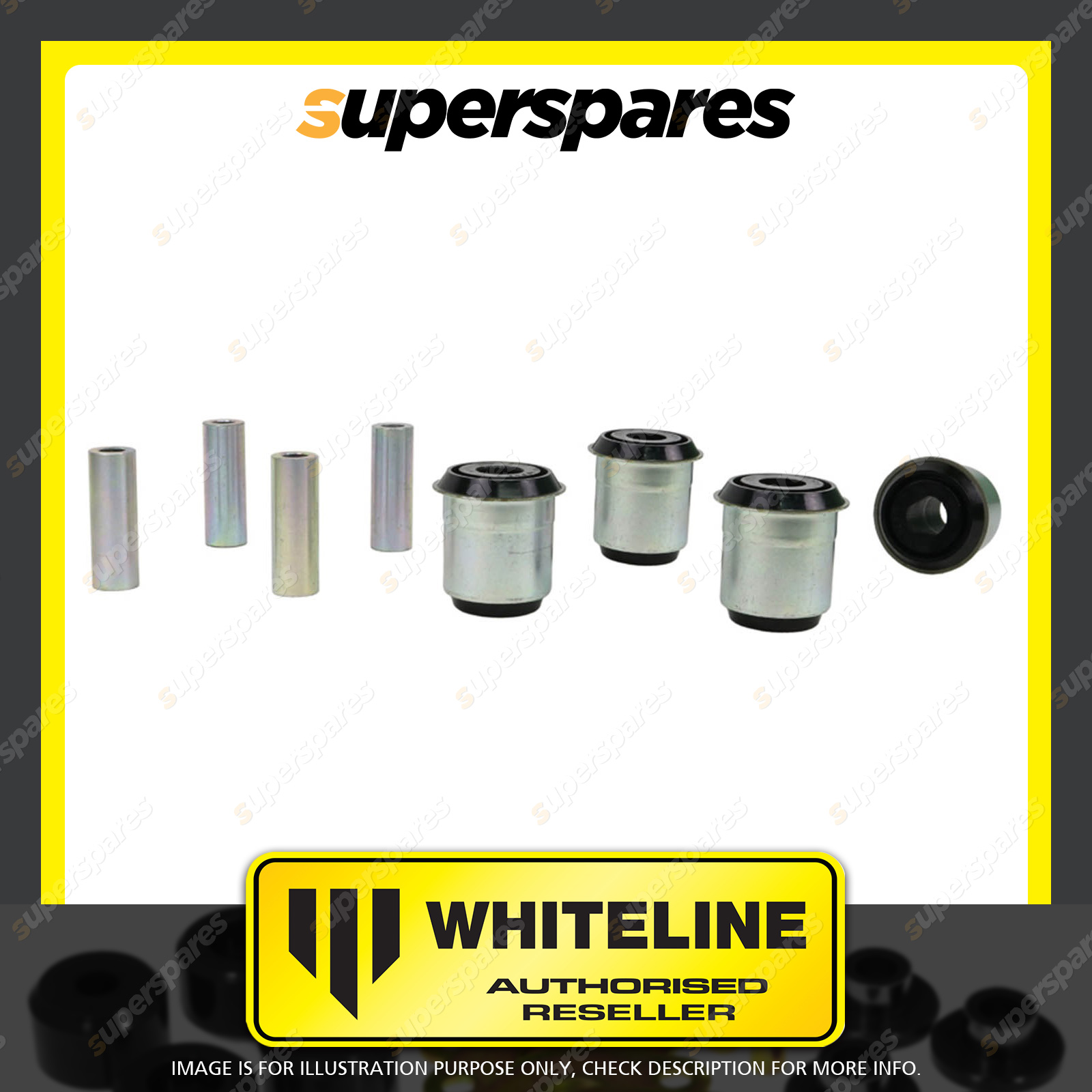 | Contents : Whiteline Front Trailing arm - lower bushing Warranty : 3 Year / 60,000Kms Kit Contents : 4 Shell Bushings, 4 Tubes, Install Guide, Grease |