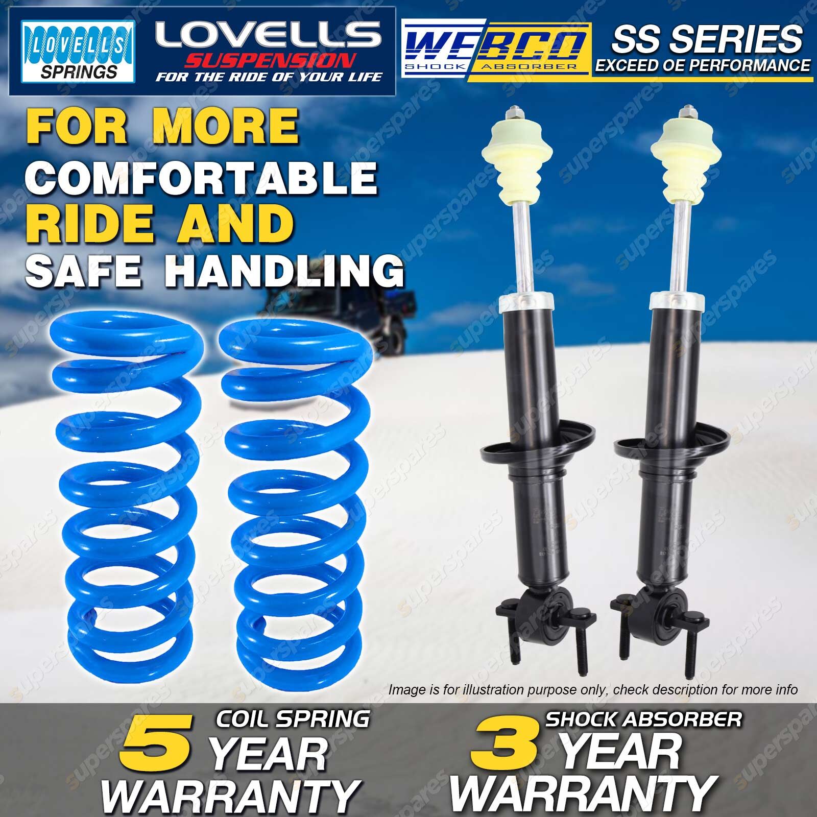 CONTENTS: 2 Pcs Front Webco Spring Seat Shock Absorbers 2 Pcs Front Standard Lovells Coil Springs (0 to 100kg Constant Load) SUITS: Ford Ranger Gen 3 PY Pick Up and Tray Back 03/22 on |