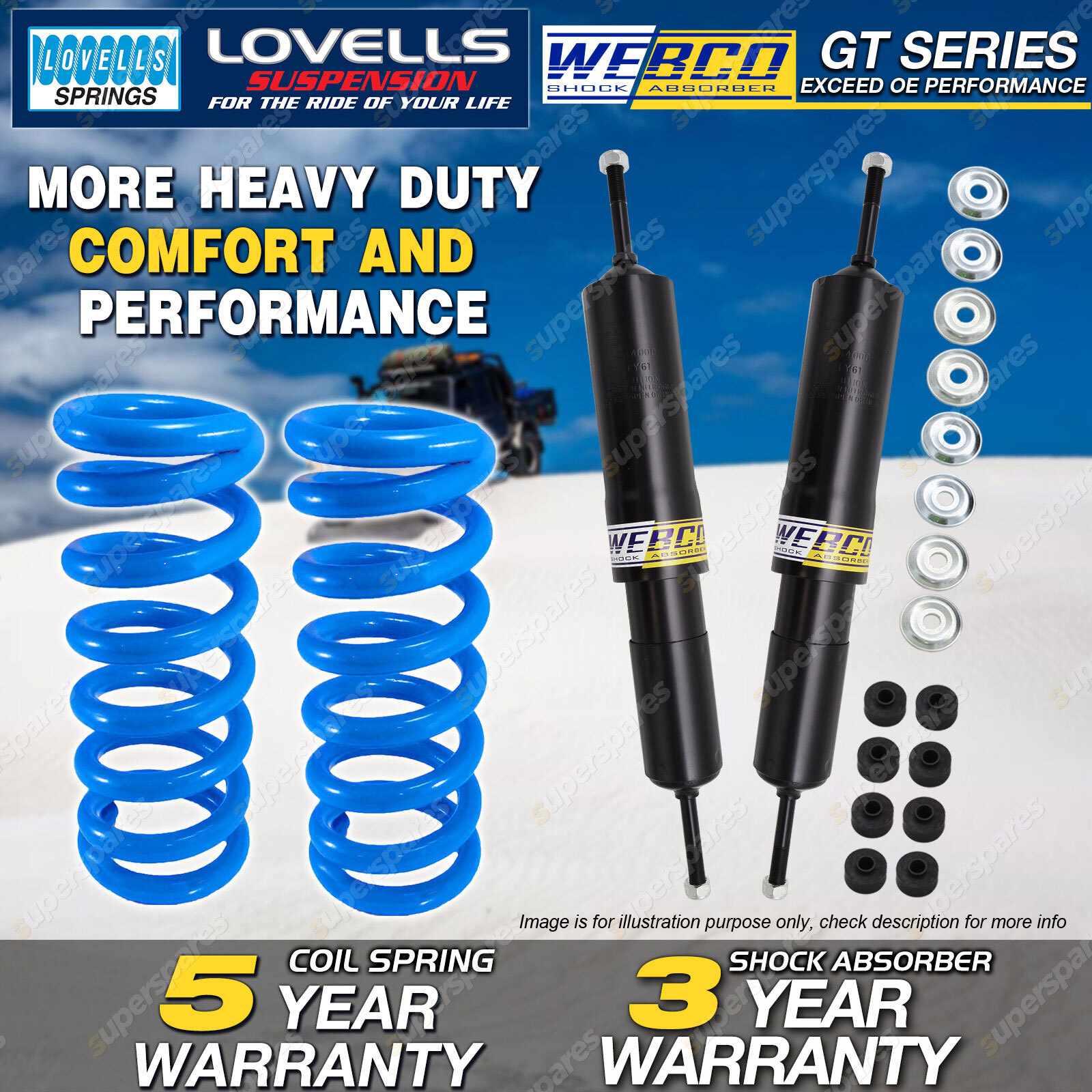 CONTENTS: 2 Pcs Front Webco Heavy Duty Shock Absorbers 2 Pcs Front Lovells Raised Coil Springs( 40-50mm Raised ) SUITS: TOYOTA Landcruiser 70 Series 10/99-2/07 6 Cyl All FZJ,HZJ78 Troopy TOYOTA Landcruiser 70 Series 10/99-2/07 6 Cyl All FZJ,HZJ79 T/Back TOYOTA Landcruiser 70 Series 10/99-2/07 6 Cyl All FZJ,HZJ79 S/Rig (*please advise year model, so we can make sure send you the right parts) |