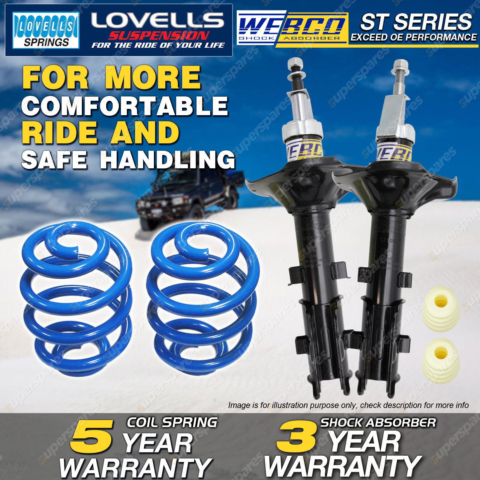 CONTENTS: 2 Pcs Front Webco Strut Shock Absorbers 2 Pcs Front Sport Low Lovells Coil Springs( 25-40mm Lower ) SUITS: HYUNDAI EXCEL HU X3 Series Sedan & Hatchback Oct-94 - May-97 HYUNDAI EXCEL X3 Series Sedan & Hatchback Jun-97 - Jun-00 (*please advise year model, so we can make sure send you the right parts) |