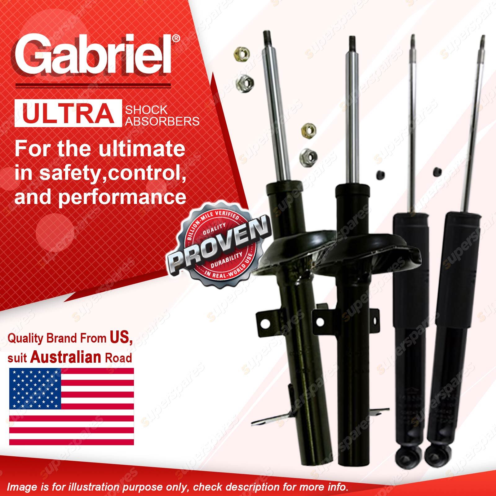 | Note: eBay's compatibility table is not accurate in some cases. Please refer to the following information we have provided for you. Copyright © 2014 - 2023 Superspares. All rights reserved. Contents : 2 x Front Gabriel Ultra Strut shock Absorbers - Gas 2 x Rear Gabriel Ultra Shock Absorbers - Gas Warranty : 3 Years Suit : Ford Focus LR 1.8 2.0L Sedan Hatch 9/02-4/05 |
