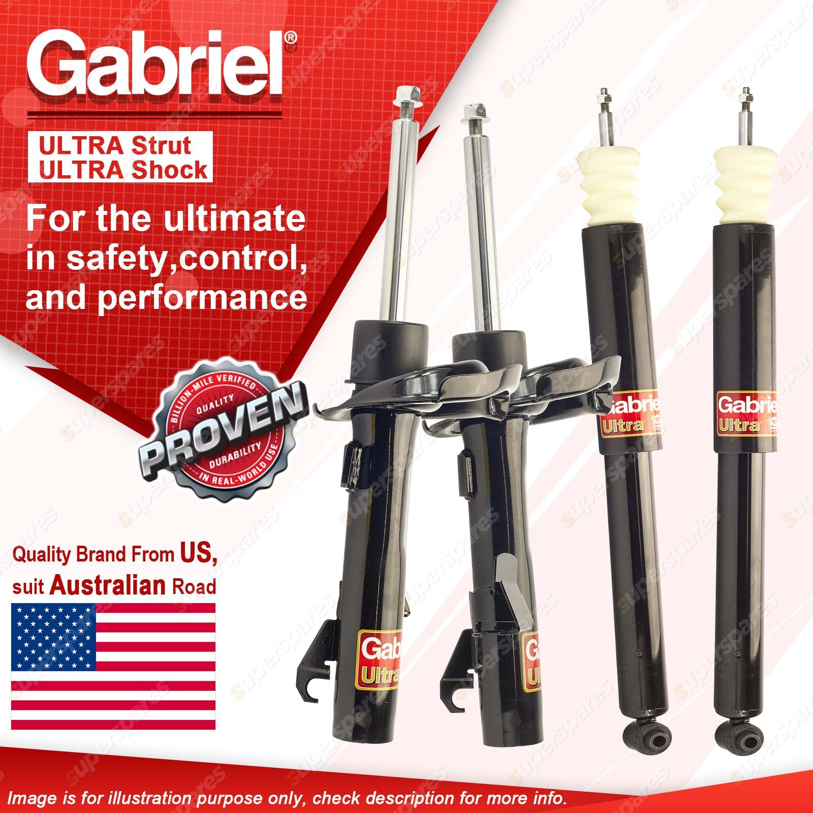 | Note: eBay's compatibility table is not accurate in some cases. Please refer to the following information we have provided for you. Copyright © 2014 - 2023 Superspares. All rights reserved. Contents : 2 x Front Gabriel Ultra Strut shock Absorbers - Gas 2 x Rear Gabriel Ultra Shock Absorbers - Gas Warranty : 3 Years Suit : Mazda 3 BK Sedan Hatchback incl. SP23 MPS 1/04-3/09 |