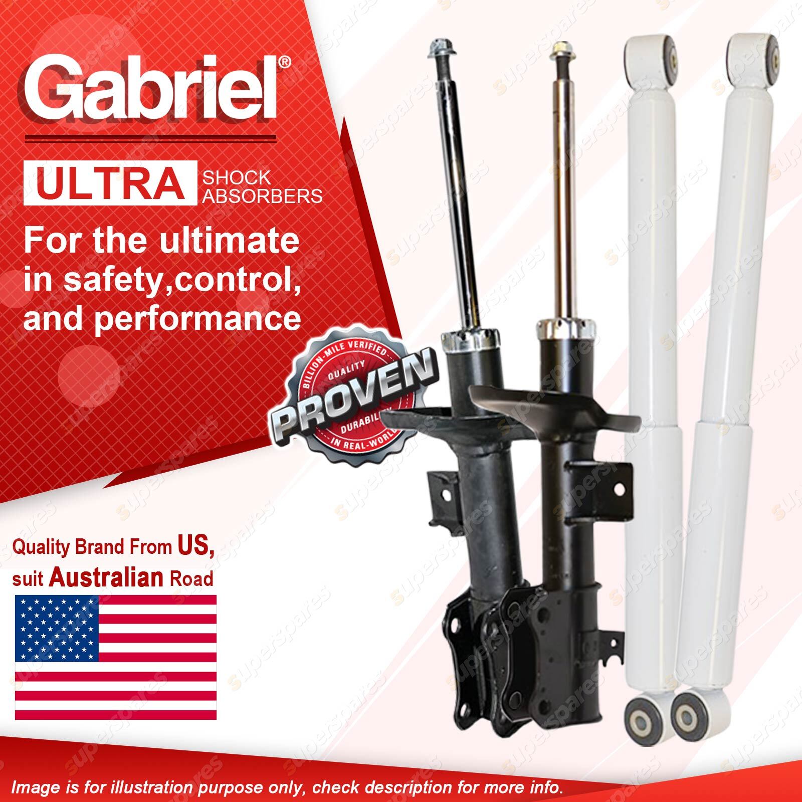 | Note: eBay's compatibility table is not accurate in some cases. Please refer to the following information we have provided for you. Copyright © 2014 - 2023 Superspares. All rights reserved. Contents : 2 x Front Gabriel Ultra Strut shock Absorbers - Gas 2 x Rear Gabriel Ultra LT Shock Absorbers - Gas Warranty : 3 Years Suit : Suzuki Grand Vitara JB JT 4WD 9/05 on |