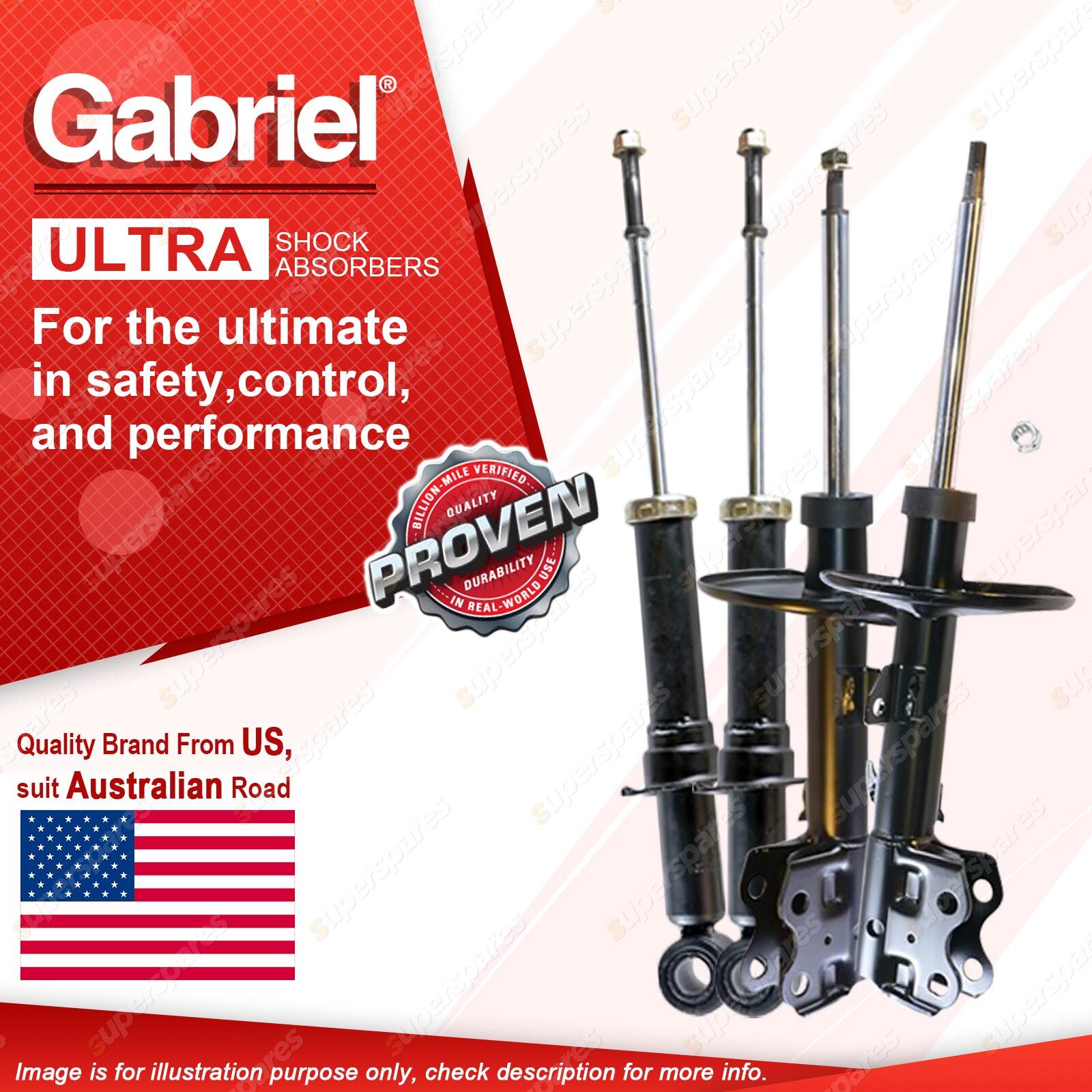 | Note: eBay's compatibility table is not accurate in some cases. Please refer to the following information we have provided for you. Copyright © 2014 - 2023 Superspares. All rights reserved. Contents : 2 x Front Gabriel Ultra Strut shock Absorbers - Gas 2 x Rear Gabriel Ultra Spring Seat Shock Absorbers - Gas Warranty : 3 Years Suit : Toyota Prius NHW20R 1.5L Hatchback 11/03-6/09 |