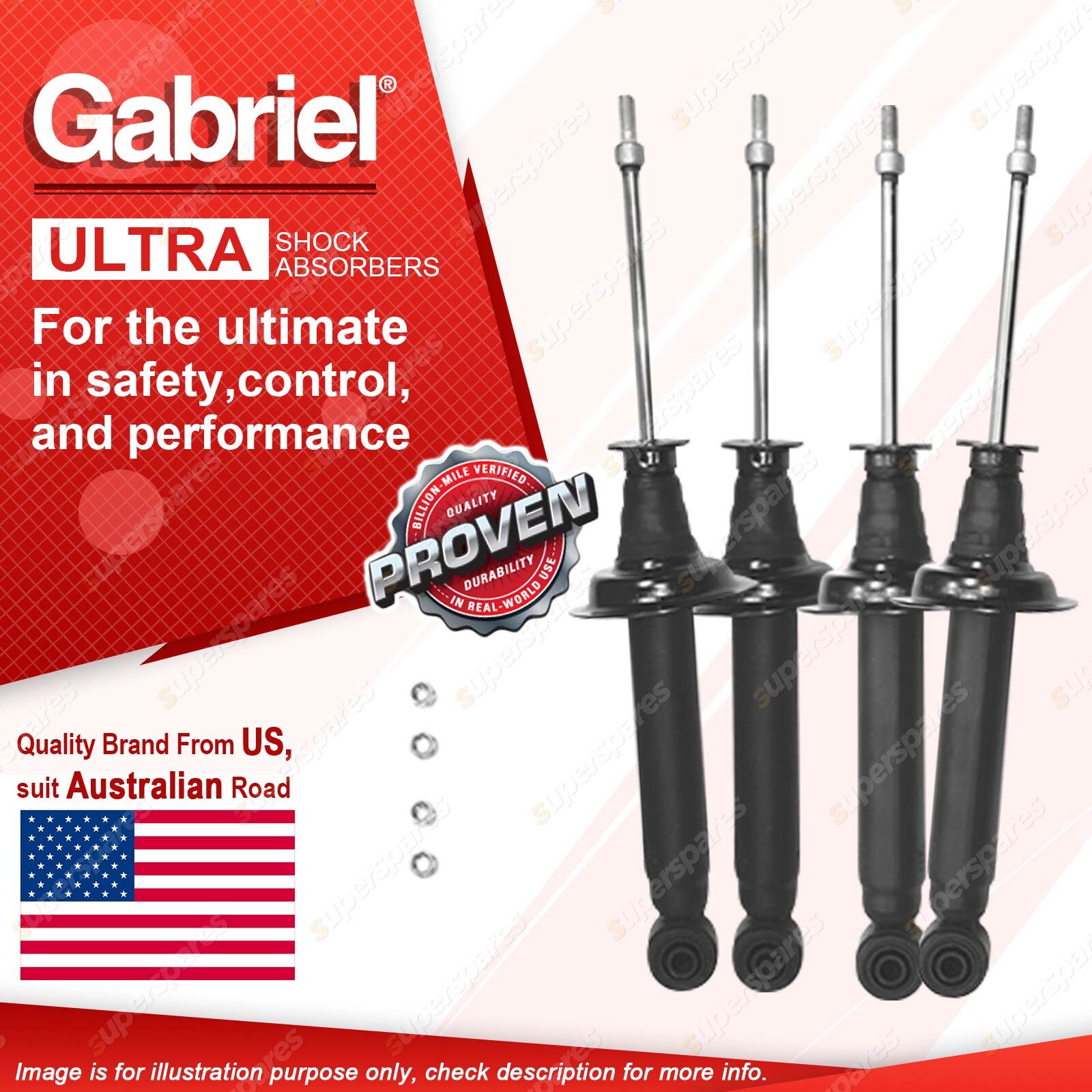 Note: eBay's compatibility table is not accurate in some cases. Please refer to the following information we have provided for you. Copyright © 2014 - 2023 Superspares. All rights reserved. Contents : 2 x Front Gabriel Ultra Spring Seat Shock Absorbers - Gas 2 x Rear Gabriel Ultra Spring Seat Shock Absorbers - Gas Warranty : 3 Years Suit : Toyota Supra MA70 71 excl. adj. susp. 3/86-93 |