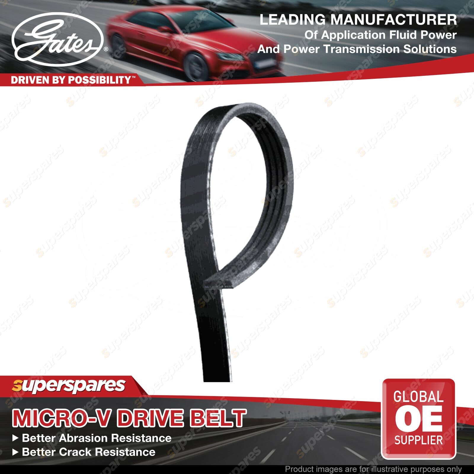 Gates Micro-V Ribbed Belts are an ideal replacement for original belts on serpentine drives and other multi-ribbed belt applications.Designed for small diameter pulleys, backside idlers, and for use with (or without) automotive tensioners.The advanced belt constructions used in these belts help to eliminate belt noise, reduce tension loss and solve problem drive applications.The special tensile members and fibre-loaded reinforcement of ribs used in Gates micro-v belts, aid in added wear and crack resistance. | ![]() |