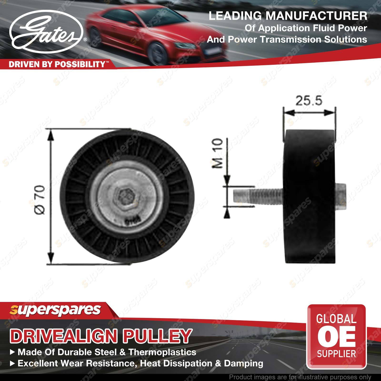 Gates DriveAlign idlers & pulleys provide OE-Quality fit to passenger cars and light trucks, performing as a locked center tensioning pulley, an automatic belt tensioner pulley, or an idler pulley. Gates idler pulleys reduce wear, vibration, and friction on belts, thereby extending belt service life OE-Quality fit to virtually every domestic or import vehicle on the road today. Engineered to exceed demanding OEM requirements. In laboratory tests, under extreme peak-to-peak vibration and contamination tests, driveAlign heavy-duty tensioners lasted up to three times longer than competitive aftermarket tensioners. | ![]() |