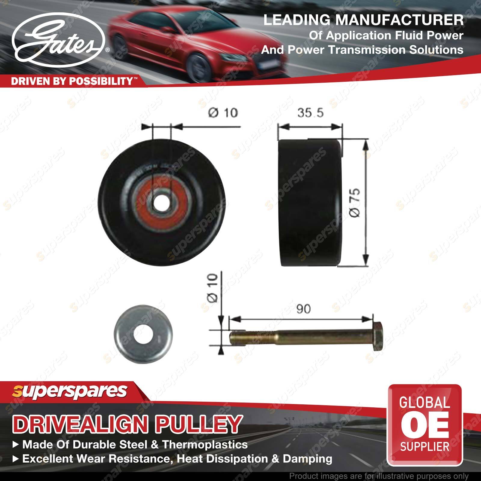 Gates DriveAlign idlers & pulleys provide OE-Quality fit to passenger cars and light trucks, performing as a locked center tensioning pulley, an automatic belt tensioner pulley, or an idler pulley. Gates idler pulleys reduce wear, vibration, and friction on belts, thereby extending belt service life OE-Quality fit to virtually every domestic or import vehicle on the road today. Engineered to exceed demanding OEM requirements. In laboratory tests, under extreme peak-to-peak vibration and contamination tests, driveAlign heavy-duty tensioners lasted up to three times longer than competitive aftermarket tensioners. | ![]() |