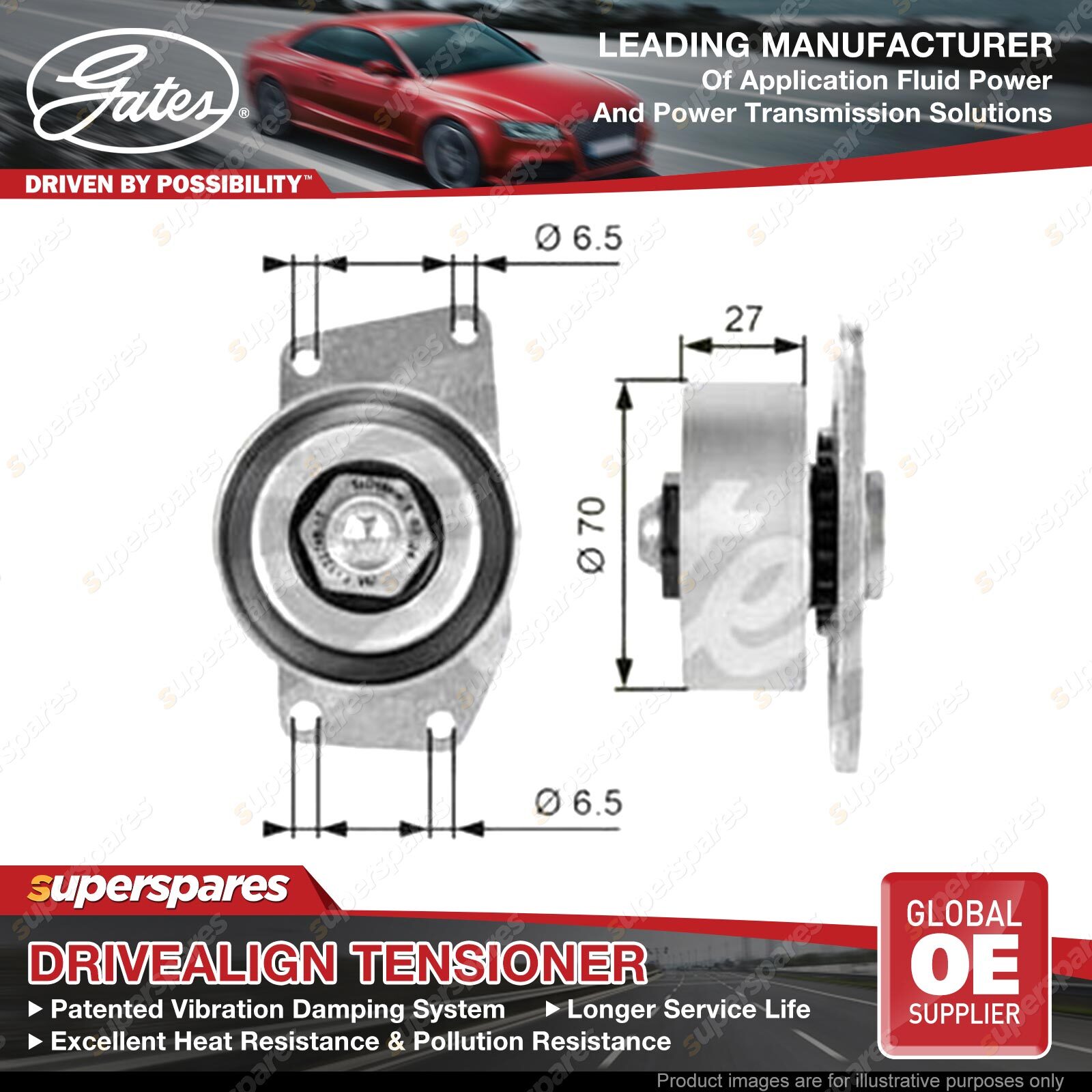 Gates DriveAlign tensioners offer precise OE fit for a wide array of applications. with gates DriveAlign tensioners, you'll get performance that's equal to or better than the original. In fact, gates engineers analyse the failure modes of OE designs and make any necessary adjustments to match the performance of the original tensioner or even outperform it. Manufactured using the same technology as original equipment manufacturer (OEM) part, assuring a factory match. | ![]() |
