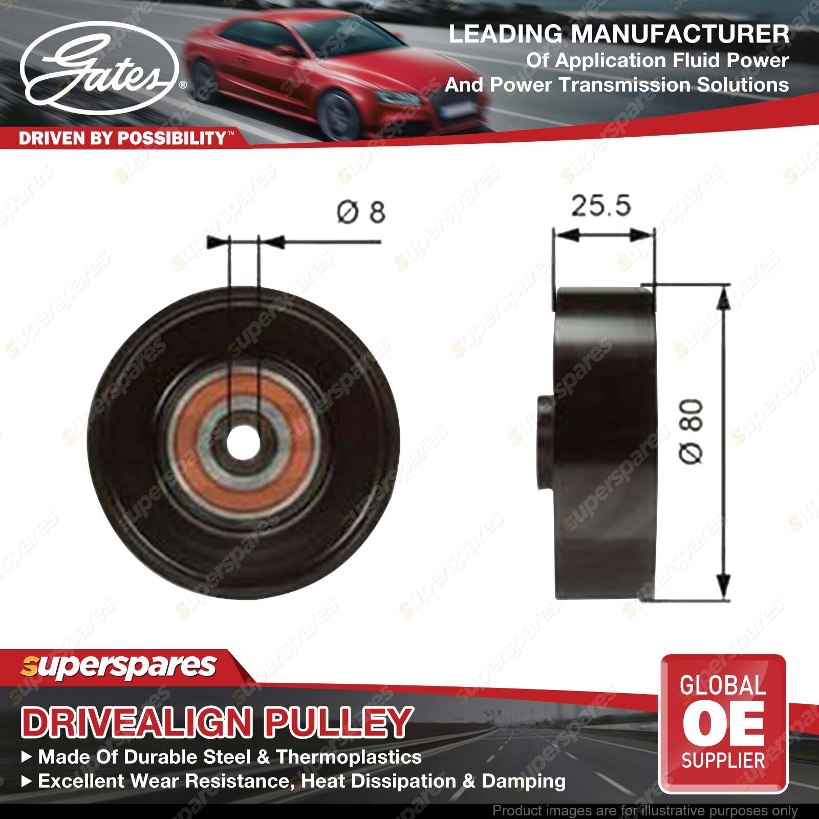 Gates DriveAlign idlers & pulleys provide OE-Quality fit to passenger cars and light trucks, performing as a locked center tensioning pulley, an automatic belt tensioner pulley, or an idler pulley. Gates idler pulleys reduce wear, vibration, and friction on belts, thereby extending belt service life OE-Quality fit to virtually every domestic or import vehicle on the road today. Engineered to exceed demanding OEM requirements. In laboratory tests, under extreme peak-to-peak vibration and contamination tests, driveAlign heavy-duty tensioners lasted up to three times longer than competitive aftermarket tensioners. | ![]() |