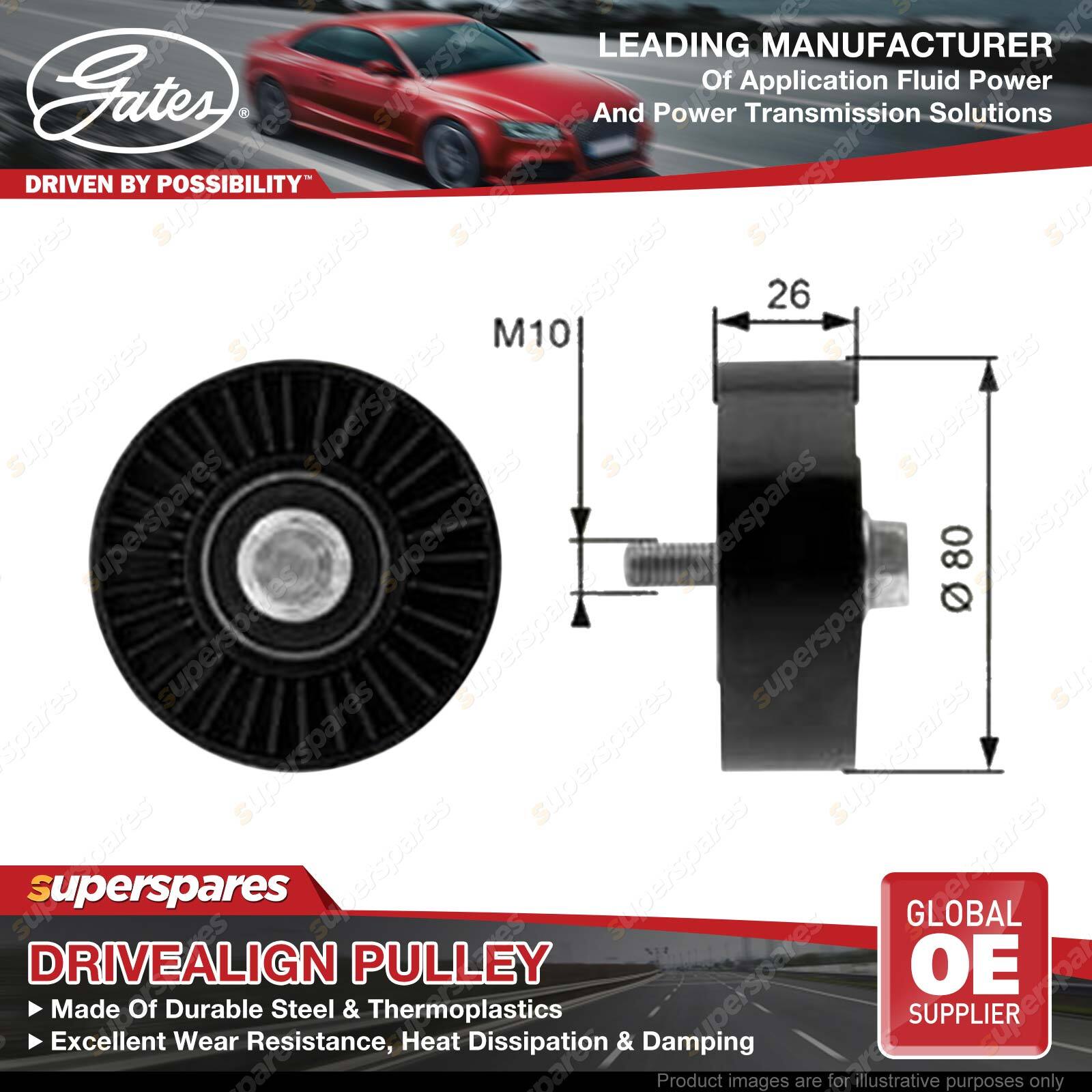 Gates DriveAlign idlers & pulleys provide OE-Quality fit to passenger cars and light trucks, performing as a locked center tensioning pulley, an automatic belt tensioner pulley, or an idler pulley. Gates idler pulleys reduce wear, vibration, and friction on belts, thereby extending belt service life OE-Quality fit to virtually every domestic or import vehicle on the road today. Engineered to exceed demanding OEM requirements. In laboratory tests, under extreme peak-to-peak vibration and contamination tests, driveAlign heavy-duty tensioners lasted up to three times longer than competitive aftermarket tensioners. | ![]() |