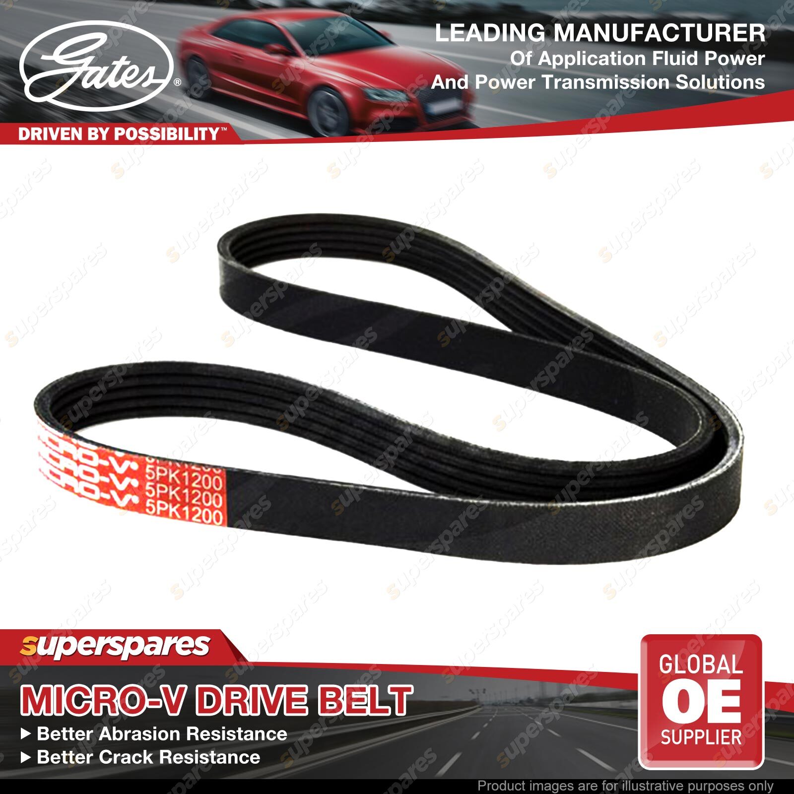 Gates Micro-V Ribbed Belts are an ideal replacement for original belts on serpentine drives and other multi-ribbed belt applications.Designed for small diameter pulleys, backside idlers, and for use with (or without) automotive tensioners.The advanced belt constructions used in these belts help to eliminate belt noise, reduce tension loss and solve problem drive applications.The special tensile members and fibre-loaded reinforcement of ribs used in Gates micro-v belts, aid in added wear and crack resistance. | ![]() |
