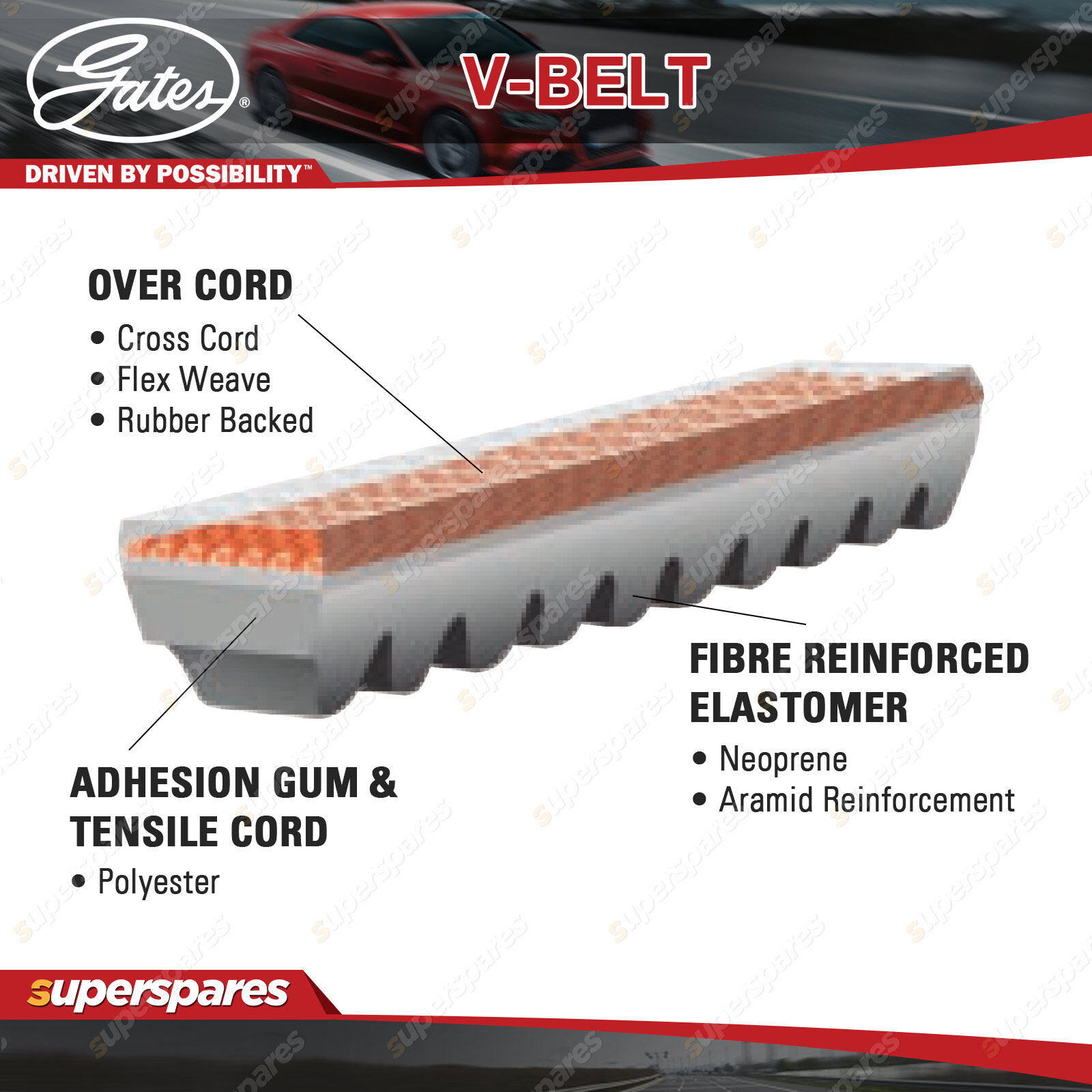Contents : 1 x Gates Alternator V Belt Drive Belt