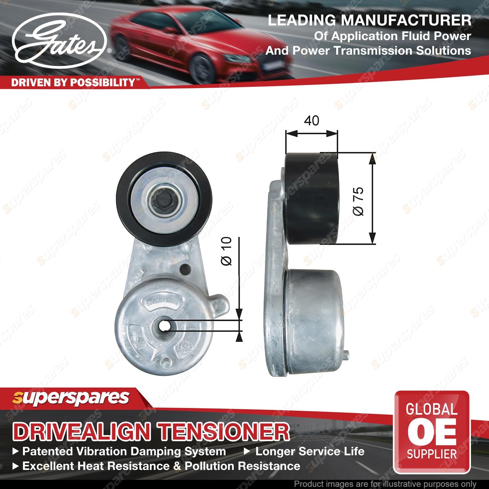 Gates DriveAlign tensioners offer precise OE fit for a wide array of applications. with gates DriveAlign tensioners, you'll get performance that's equal to or better than the original. In fact, gates engineers analyse the failure modes of OE designs and make any necessary adjustments to match the performance of the original tensioner or even outperform it. Manufactured using the same technology as original equipment manufacturer (OEM) part, assuring a factory match. | ![]() |