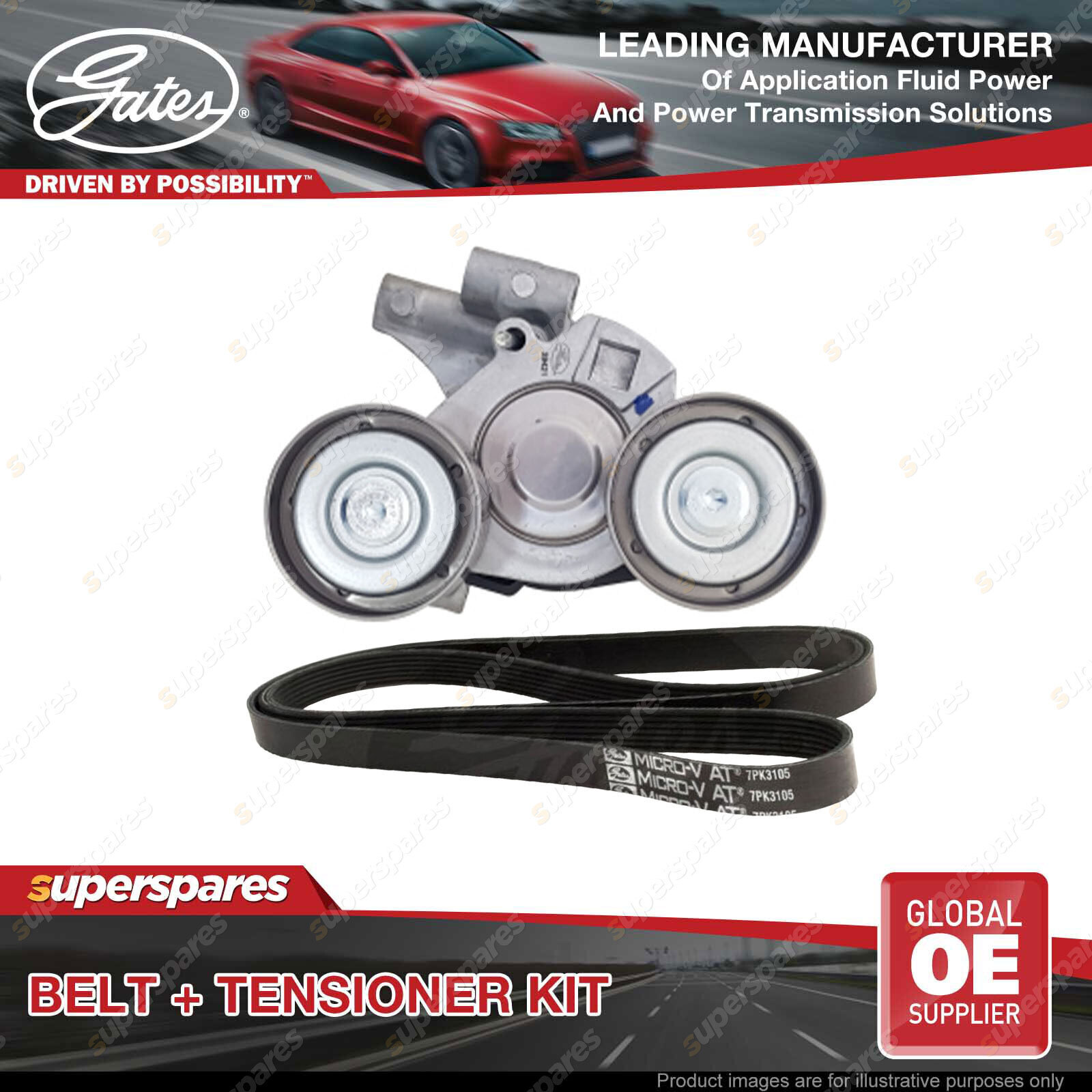 Gates belt kit offer customers the best and most complete repair solution. Gates tensioners offer precise OE fit for a wide array of applications. with gates tensioners, you'll get performance that's equal to or better than the original. The special tensile members and fibre-loaded reinforcement of ribs used in Gates belt, aid in added wear and crack resistance. Gates engineers analyse the failure modes of OE designs and make any necessary adjustments to match the performance of the original or even outperform it. Manufactured using the same technology as original equipment manufacturer (OEM) part, assuring a factory match. | ![]() |